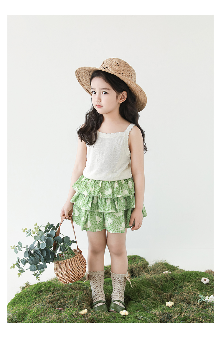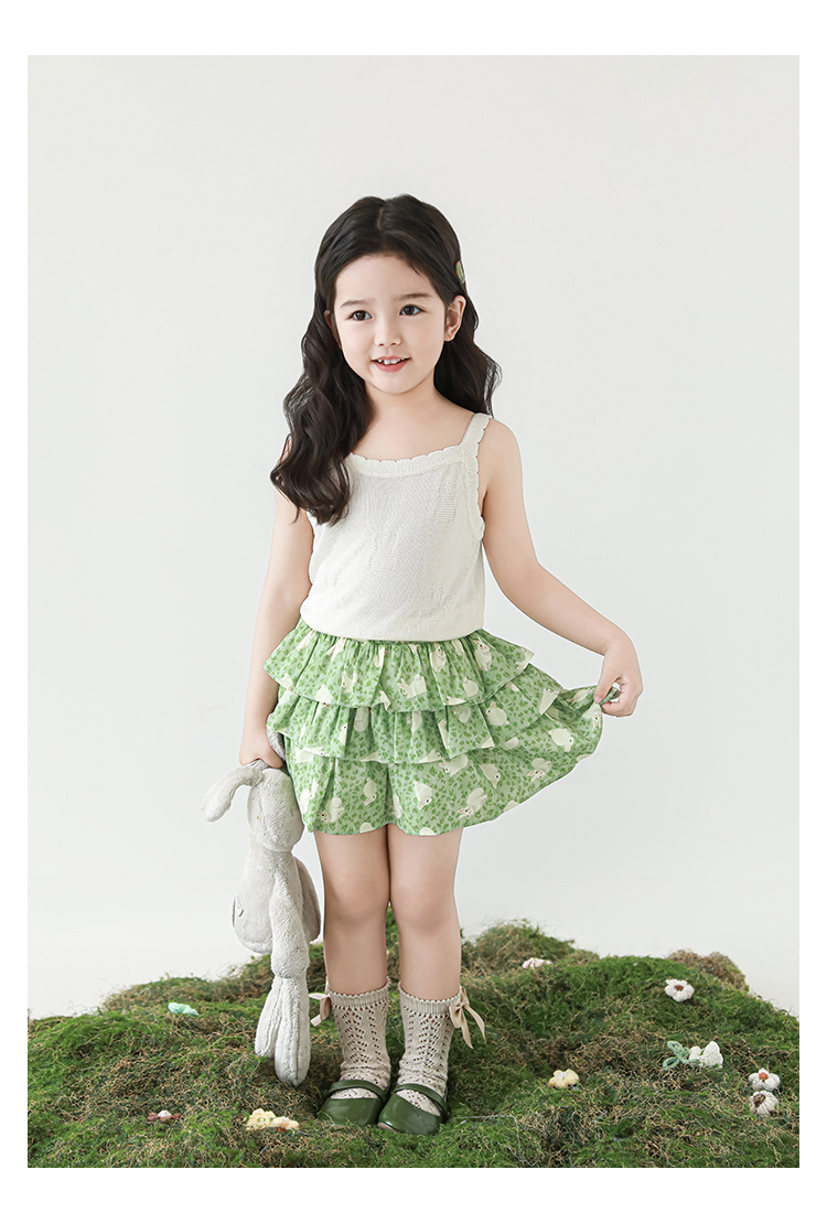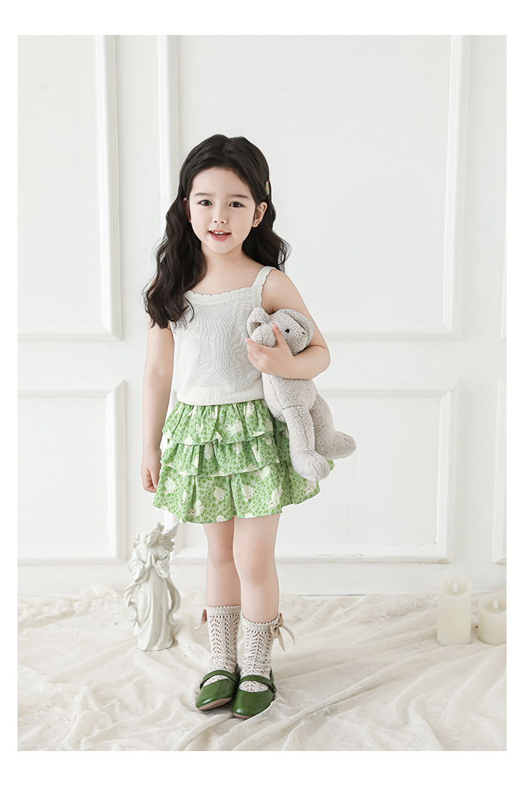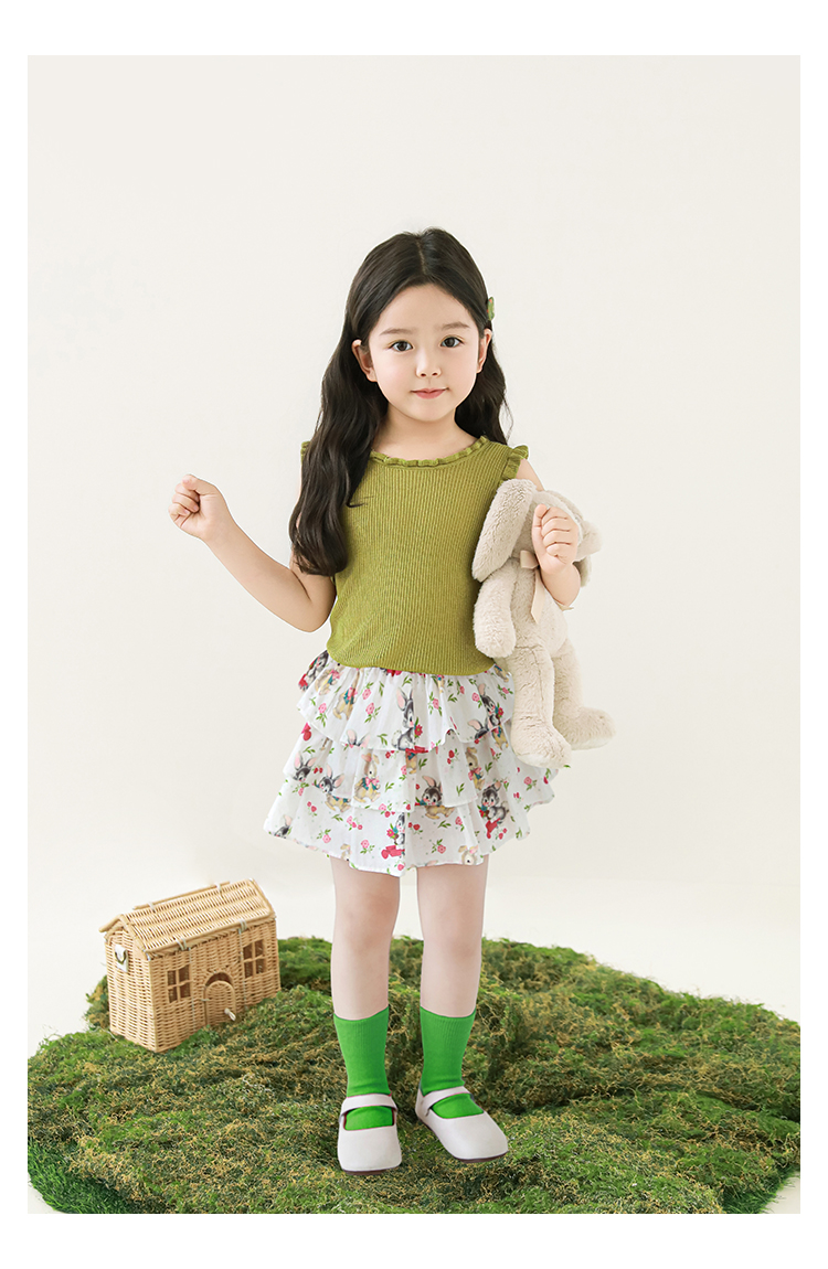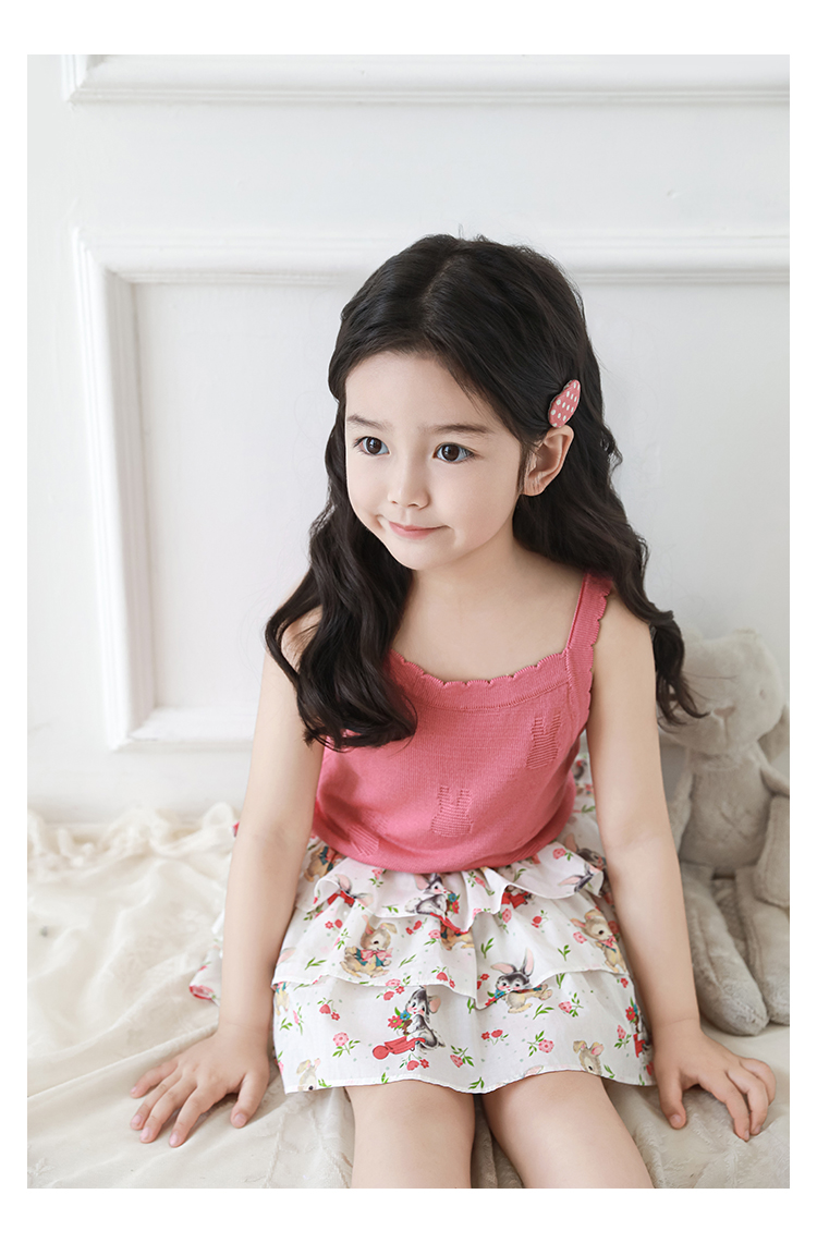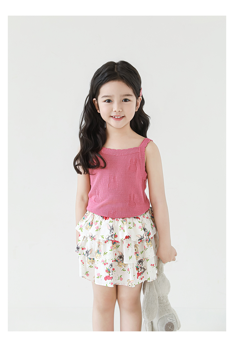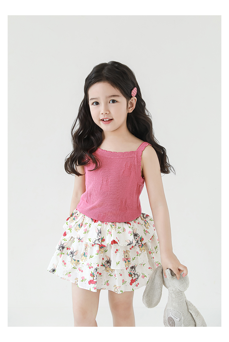 Wuribu 소녀의 3 층 케이크 예쁜 치마 여름 상쾌한 달콤한 토끼 인쇄 경량 통기성 치마
