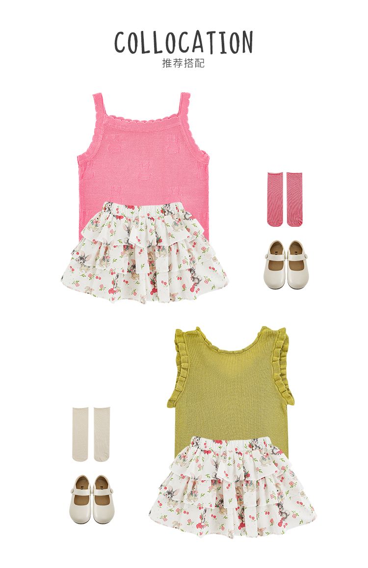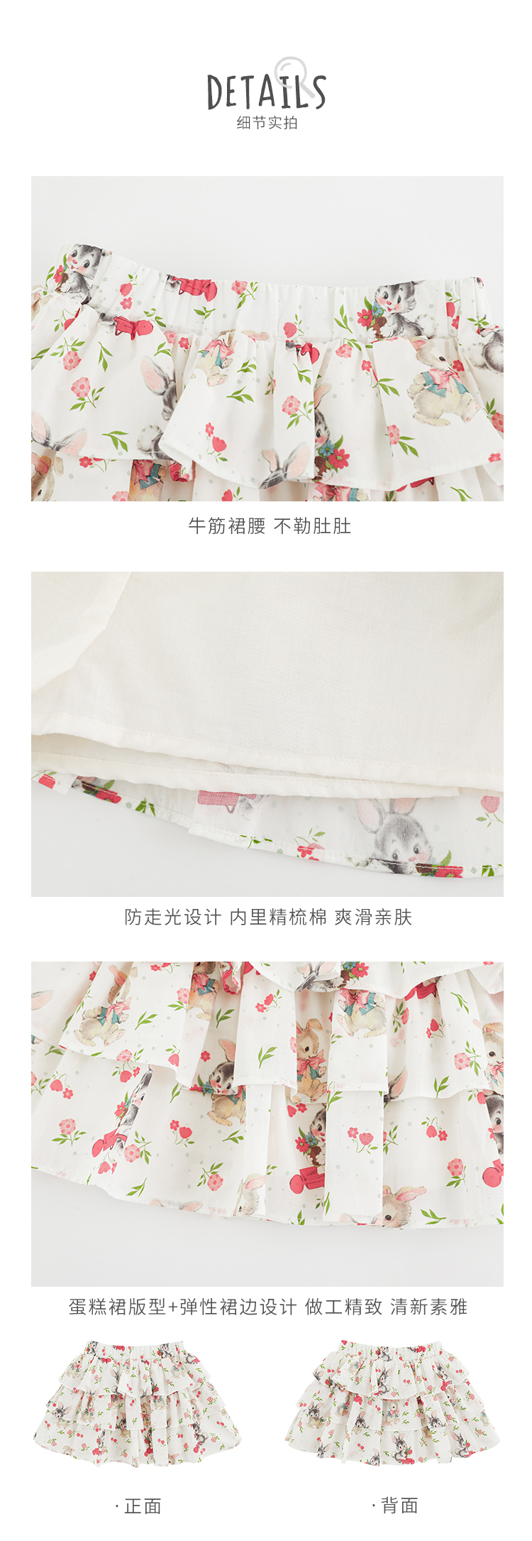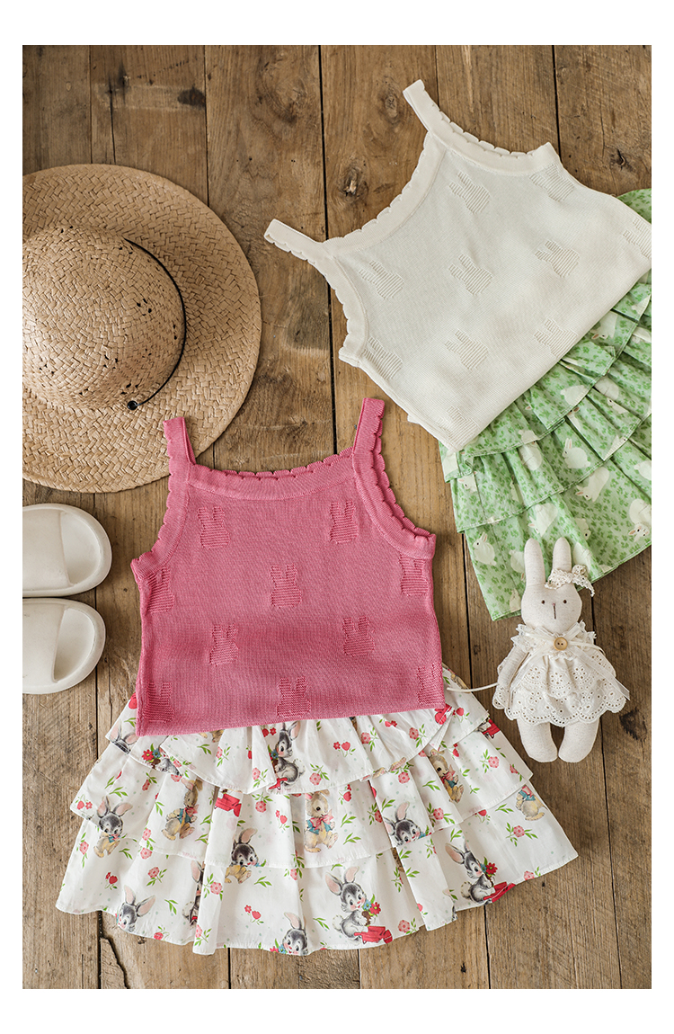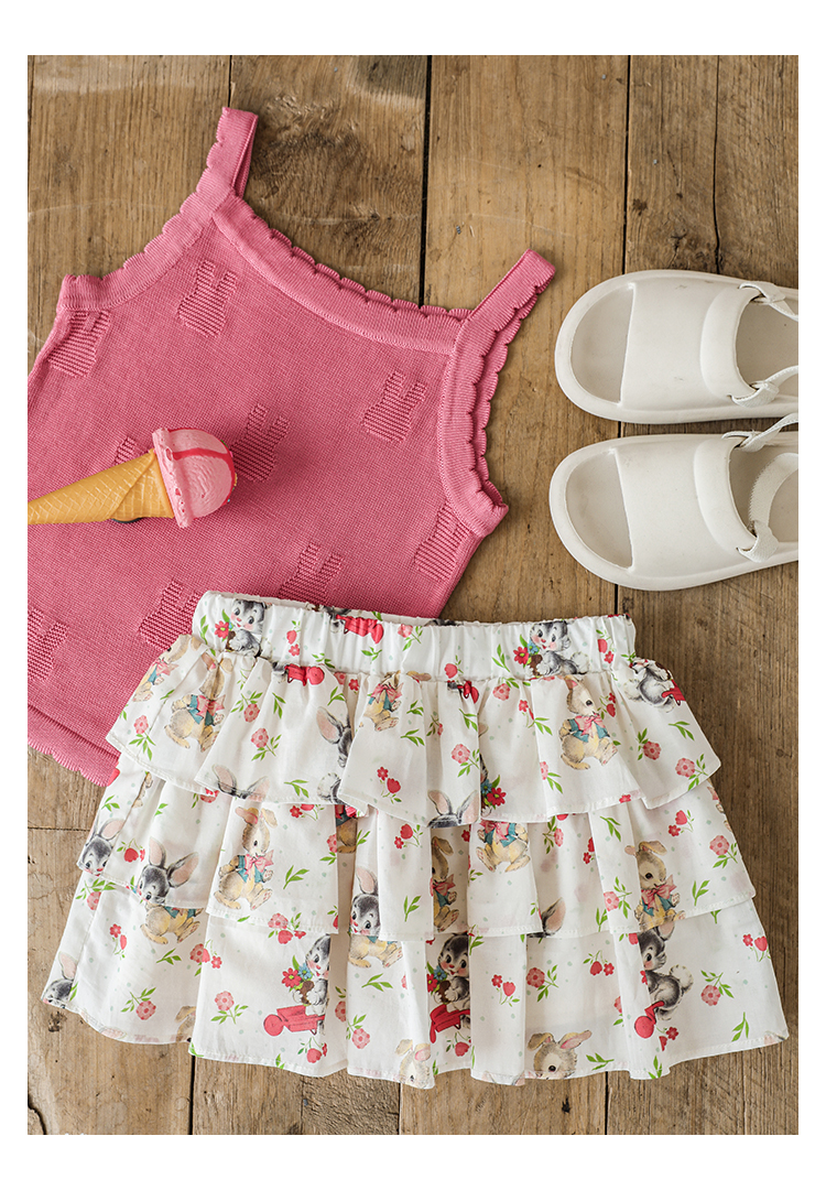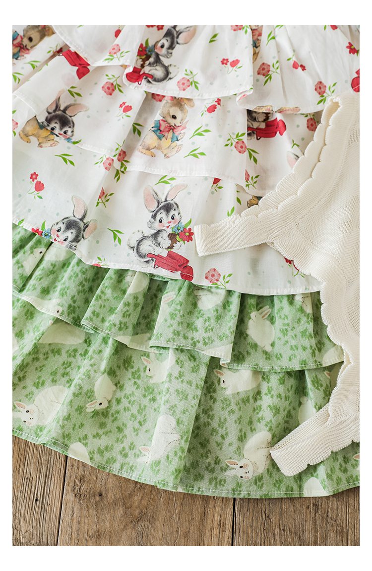 Wuribu 소녀의 3 층 케이크 예쁜 치마 여름 상쾌한 달콤한 토끼 인쇄 경량 통기성 치마스토어 가기
