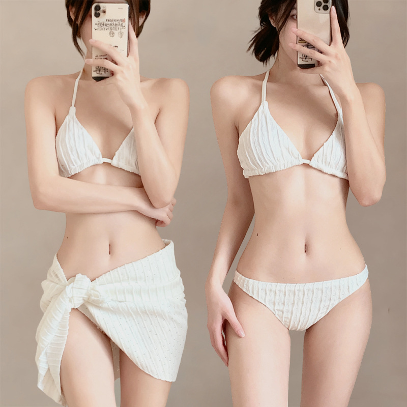 여름 신작 비키니 수영복 여성용 3피스 인 스타일 하이 엔드 배 커버 슬리밍 온천 휴가 수영복스토어 가기