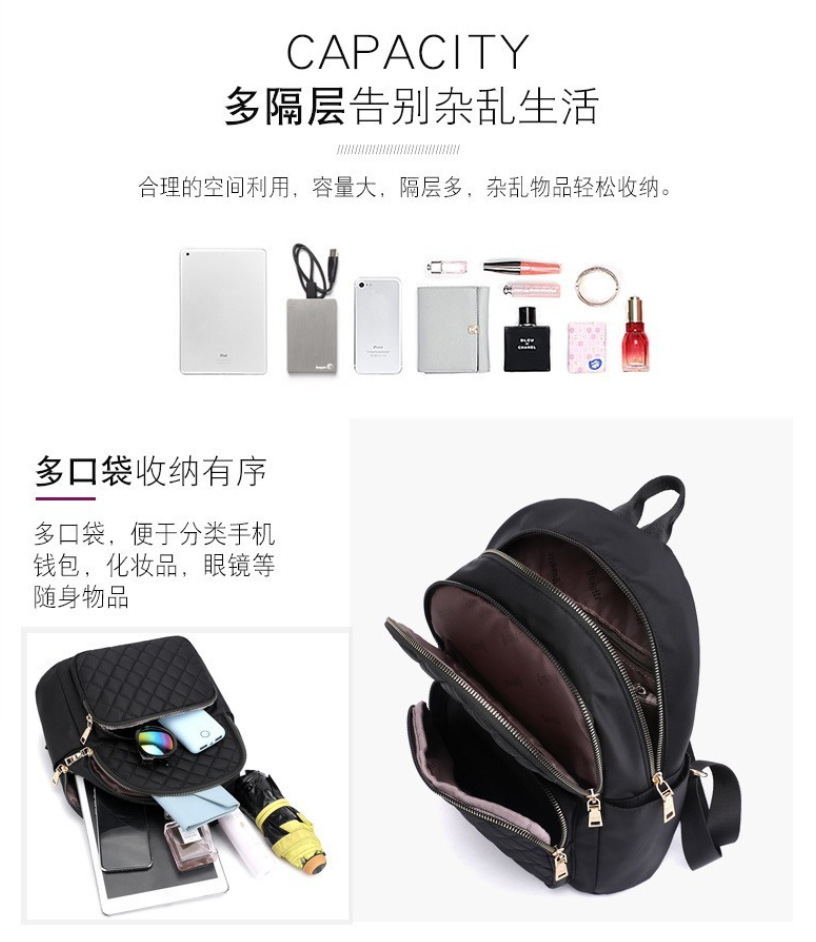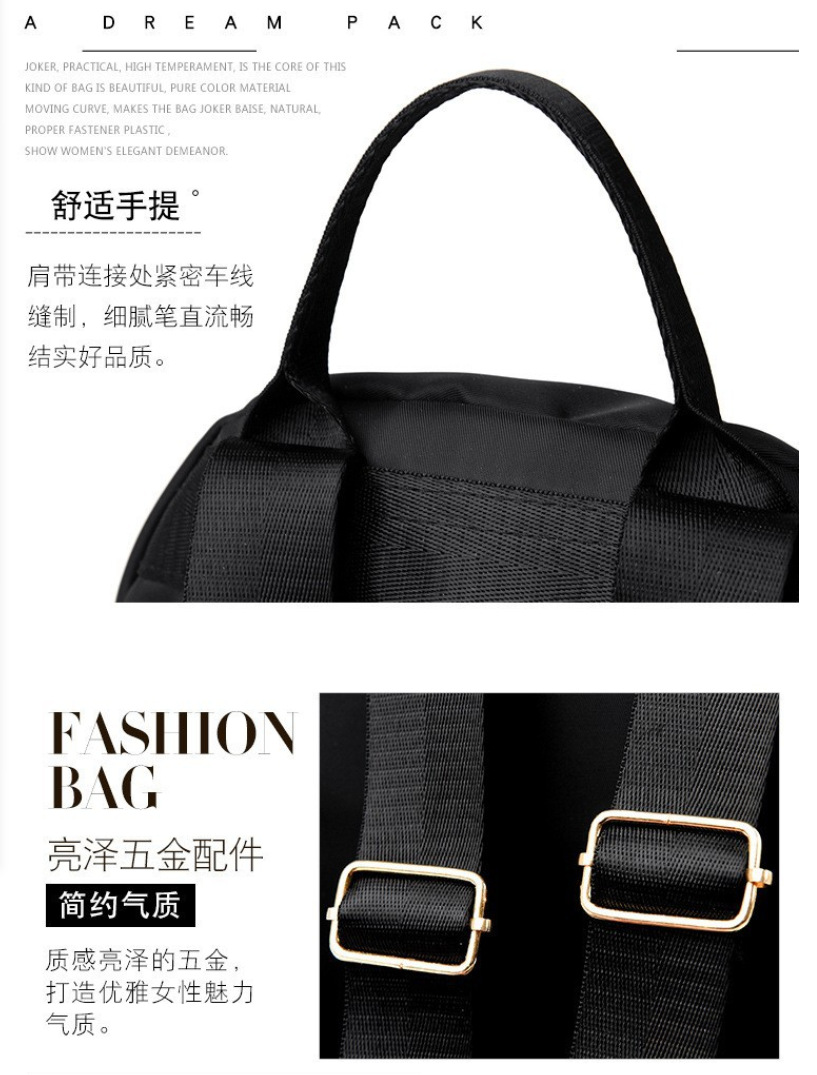 여성 캐주얼 방수 나일론 천 배낭, 패셔너블하고 다재다능하며 가벼운 여행용 배낭, 트렌디한 심플한 숄더 핸드백