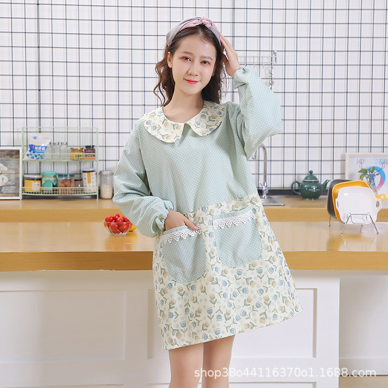 여성용 주방 가정용 앞치마 심플 로고 프린트 레스토랑 커피 네일 살롱 롱 블라우스
