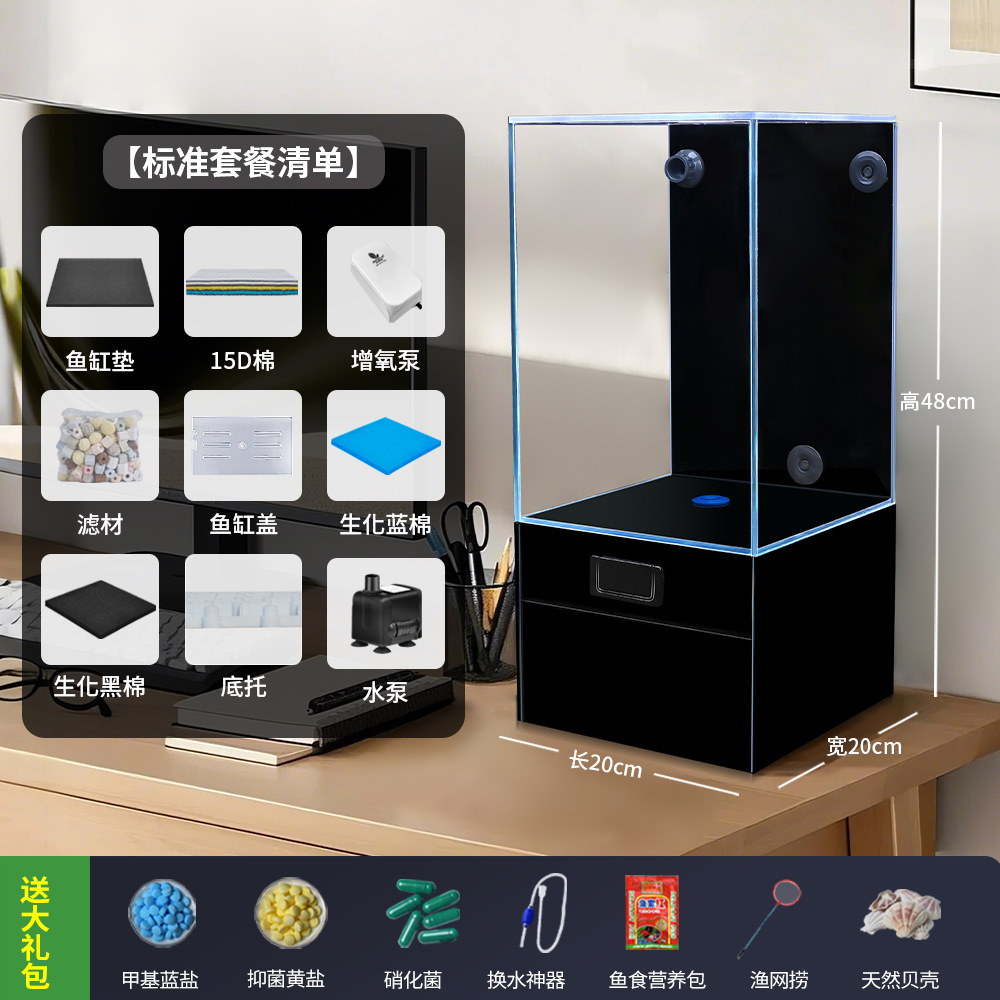 어항, 작은 거실, 2025년 신형 여과산소 일체형 기계, 유리탱크, 초백색 사각탱크, 금붕어탱크, 물교환 불필요스토어 가기