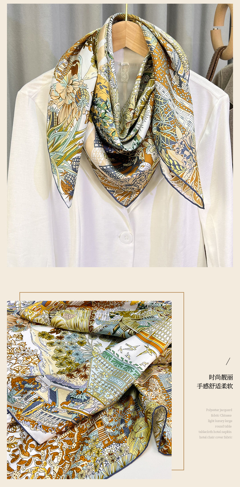 새로운 스타일 버스트 링 팰리스 여름 여성 실크 트윌 스퀘어 스카프 실크 스카프 90 라이트 럭셔리 턱받이 대형 스퀘어 스카프