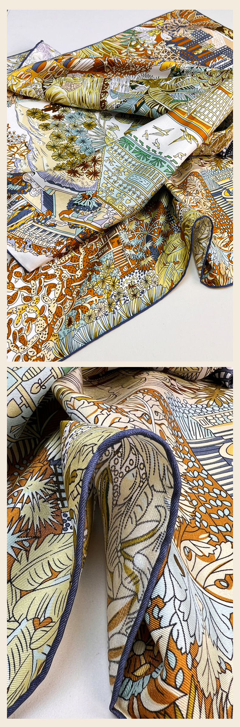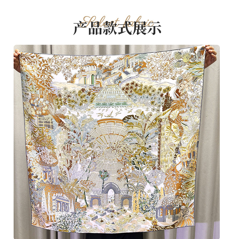 새로운 스타일 버스트 링 팰리스 여름 여성 실크 트윌 스퀘어 스카프 실크 스카프 90 라이트 럭셔리 턱받이 대형 스퀘어 스카프스토어 가기