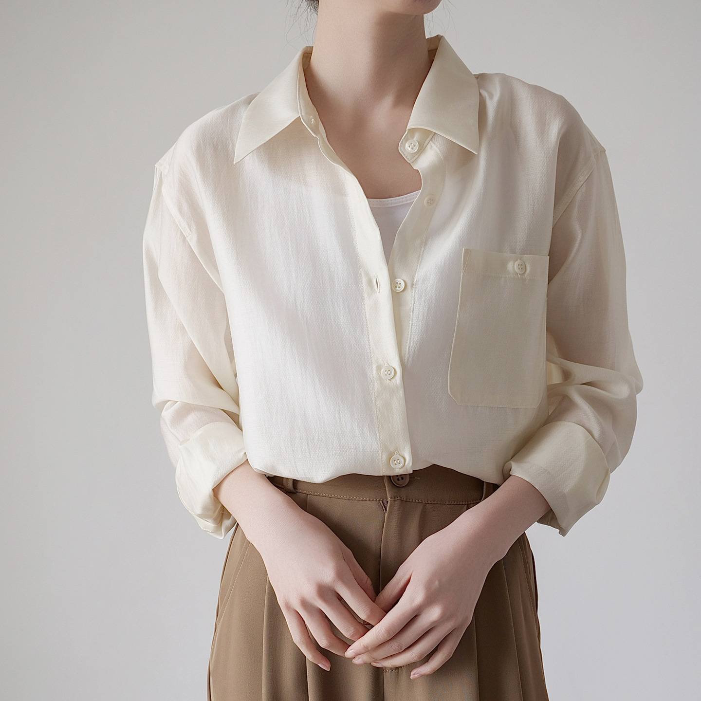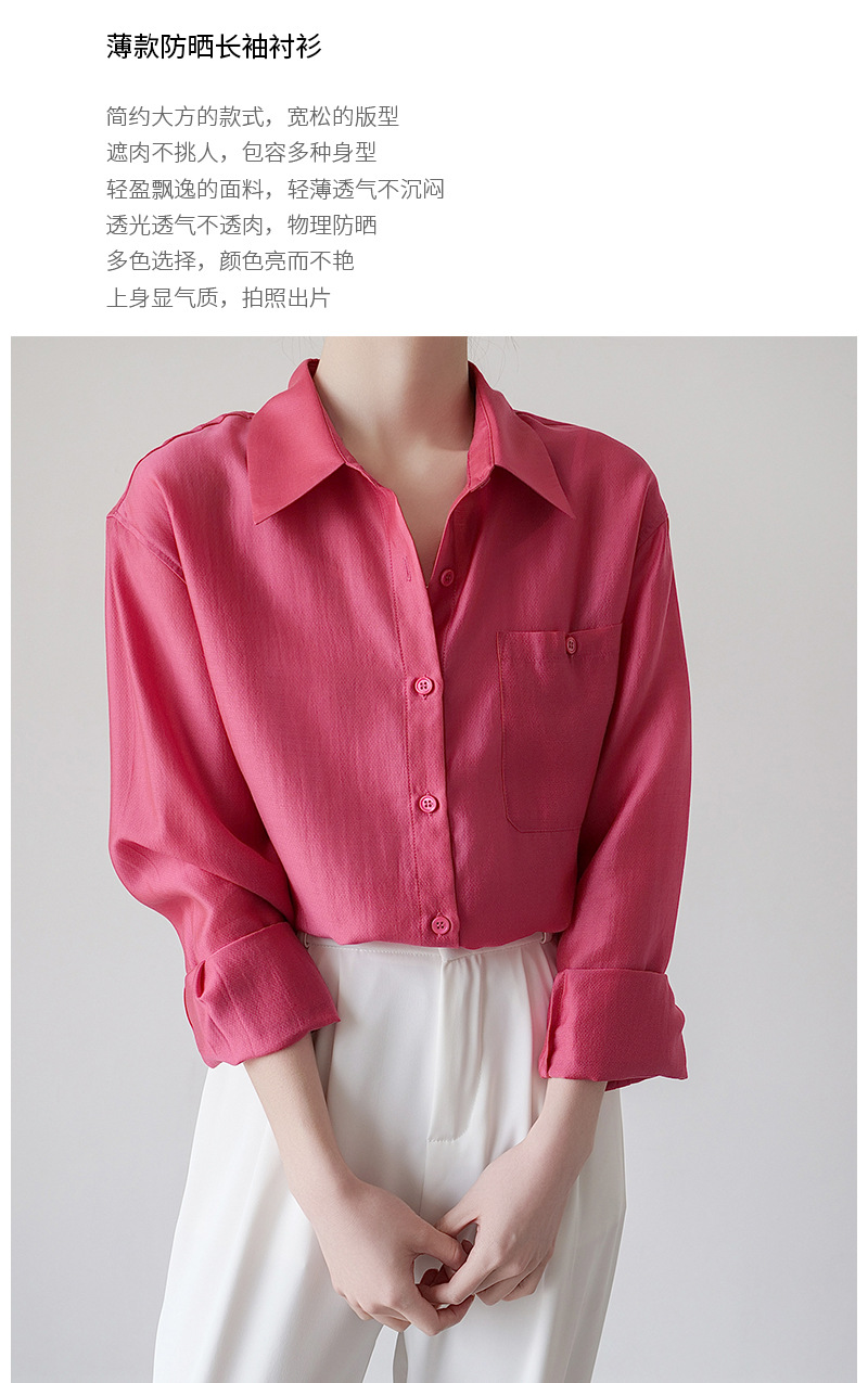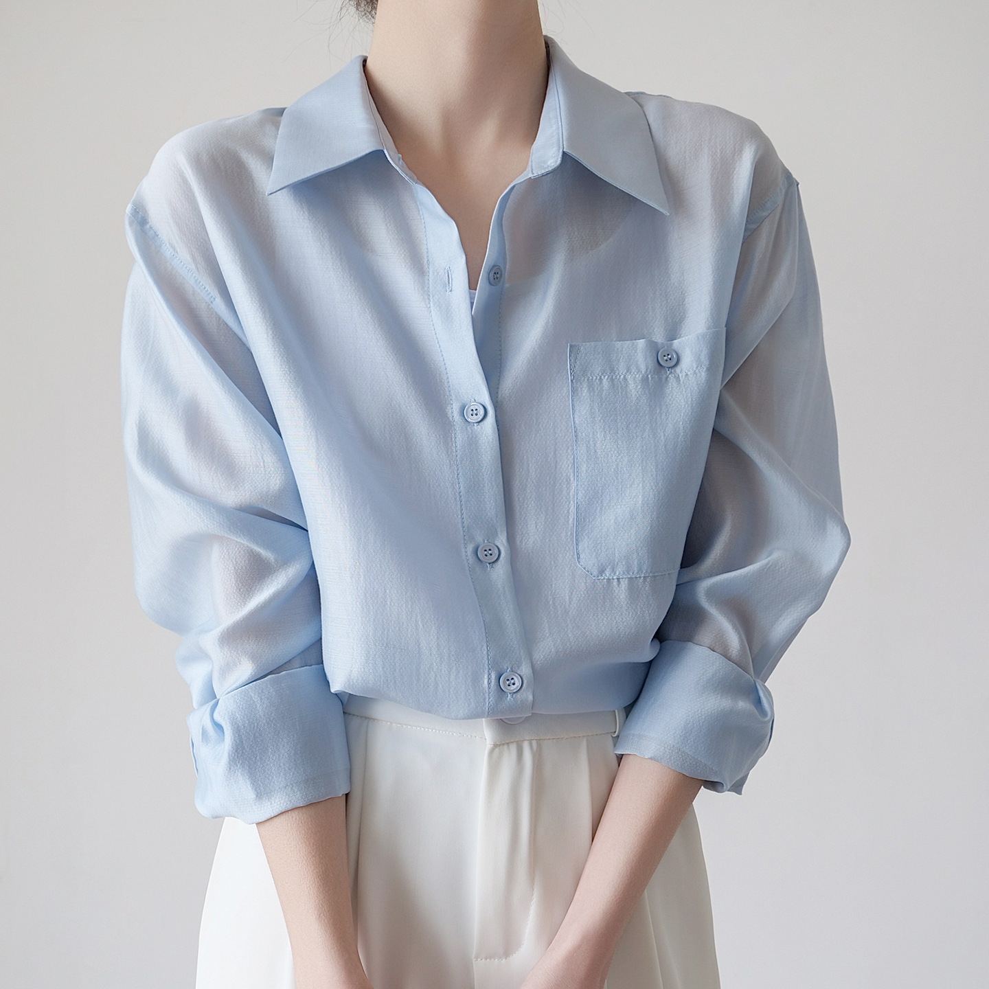 시원한 텐셀 소재의 가벼운 자외선 차단 셔츠, 여성 통근용 여름 2026 신상 긴팔 루즈핏 디자인 에어컨 셔츠스토어 가기