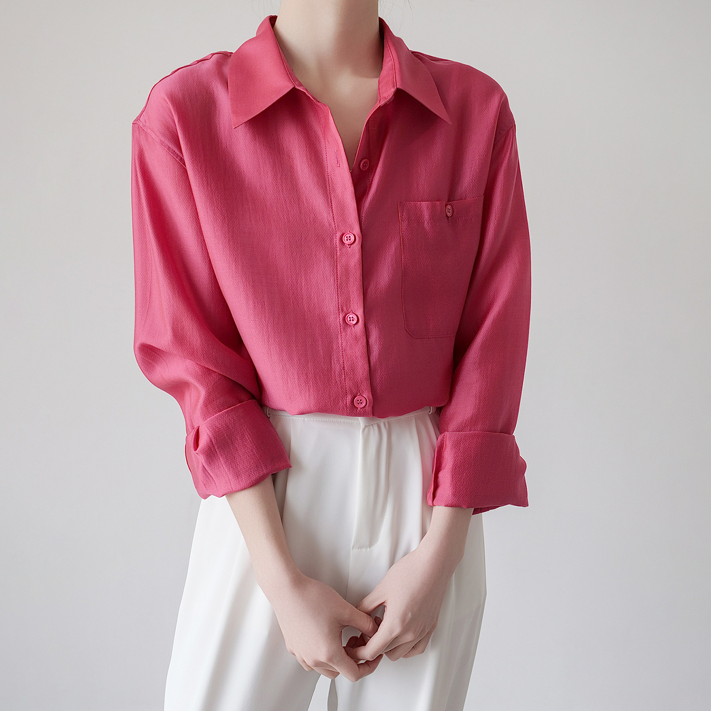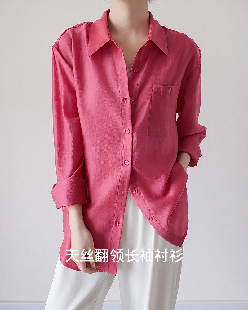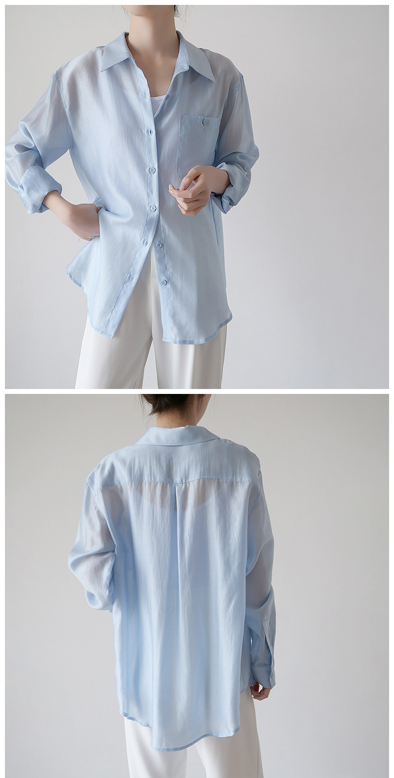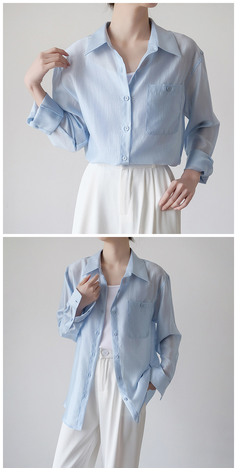 시원한 텐셀 소재의 가벼운 자외선 차단 셔츠, 여성 통근용 여름 2026 신상 긴팔 루즈핏 디자인 에어컨 셔츠스토어 가기