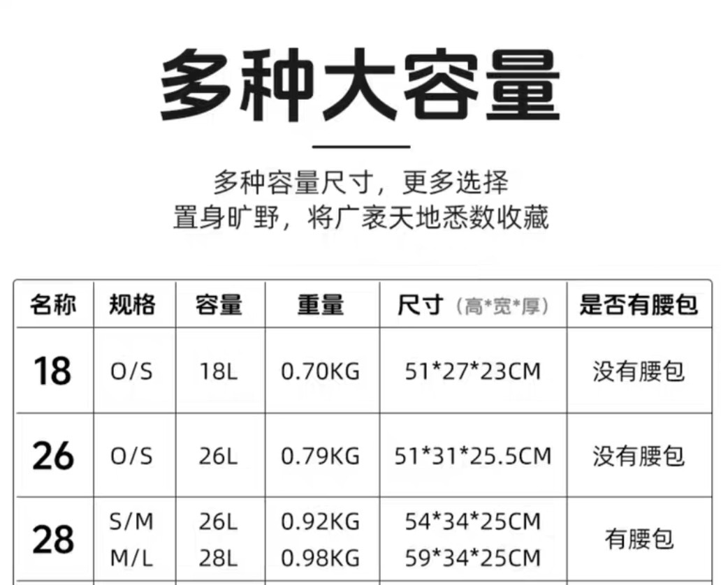 키티 호크 야외 등산 배낭 해커 18L 26L 배낭 하이킹 및 등산 배낭 등산 가방 큰 얼굴