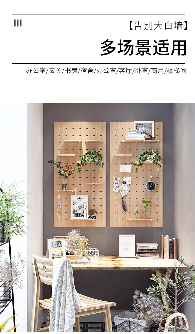 원목 홀보드, 맞춤형 현관 벽걸이 선반, 원목 서재 칸막이 수납 선반, 행잉 보드 디스플레이 선반