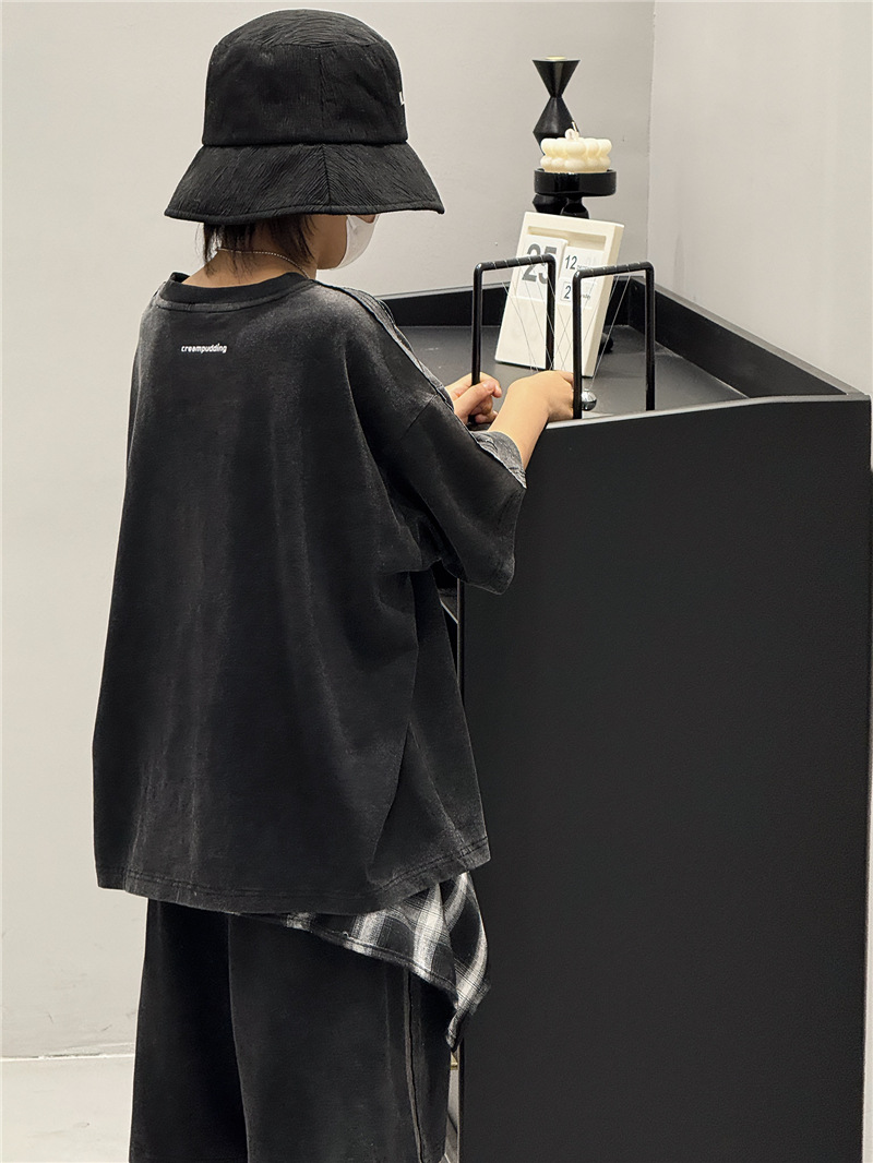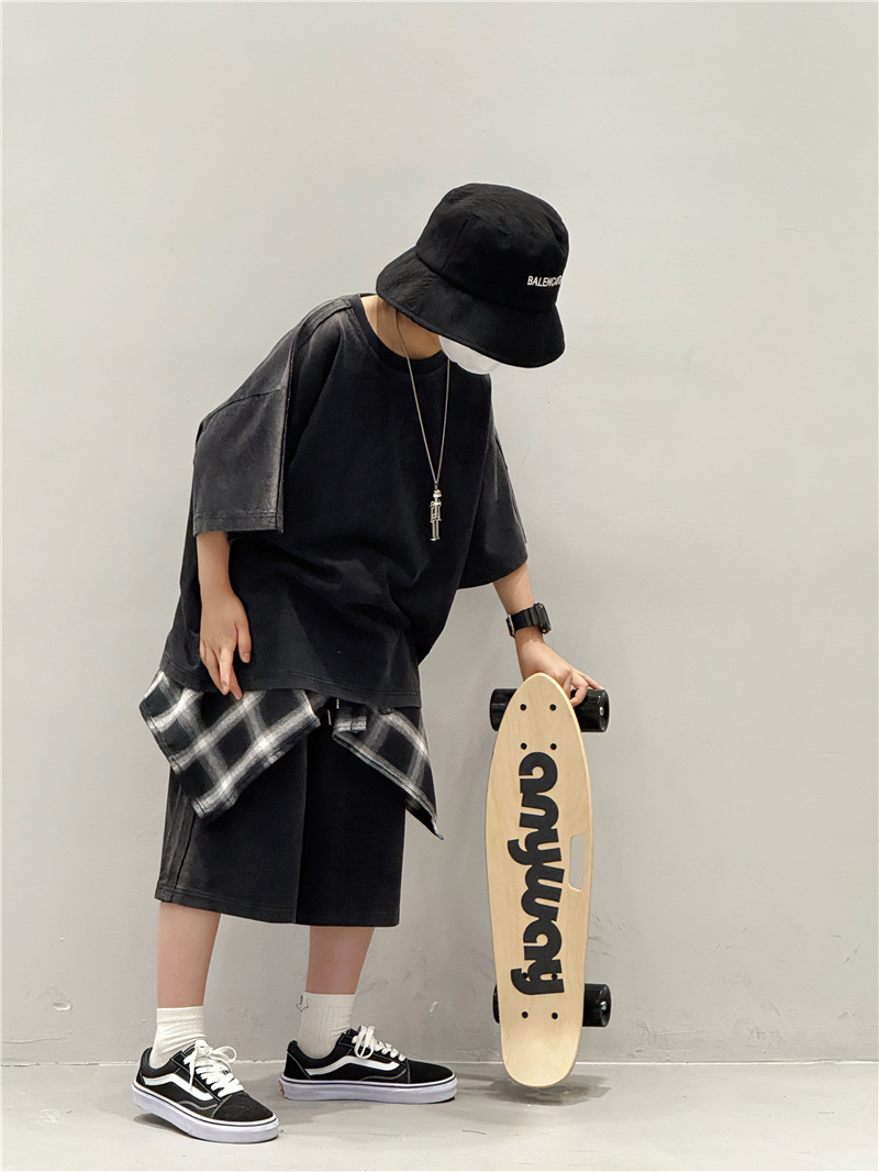 아동 여름 정장 2025 새로운 얇은 한국 스타일 티셔츠 잘 생긴 스트리트 캐주얼 소년 반팔 투피스 세트스토어 가기