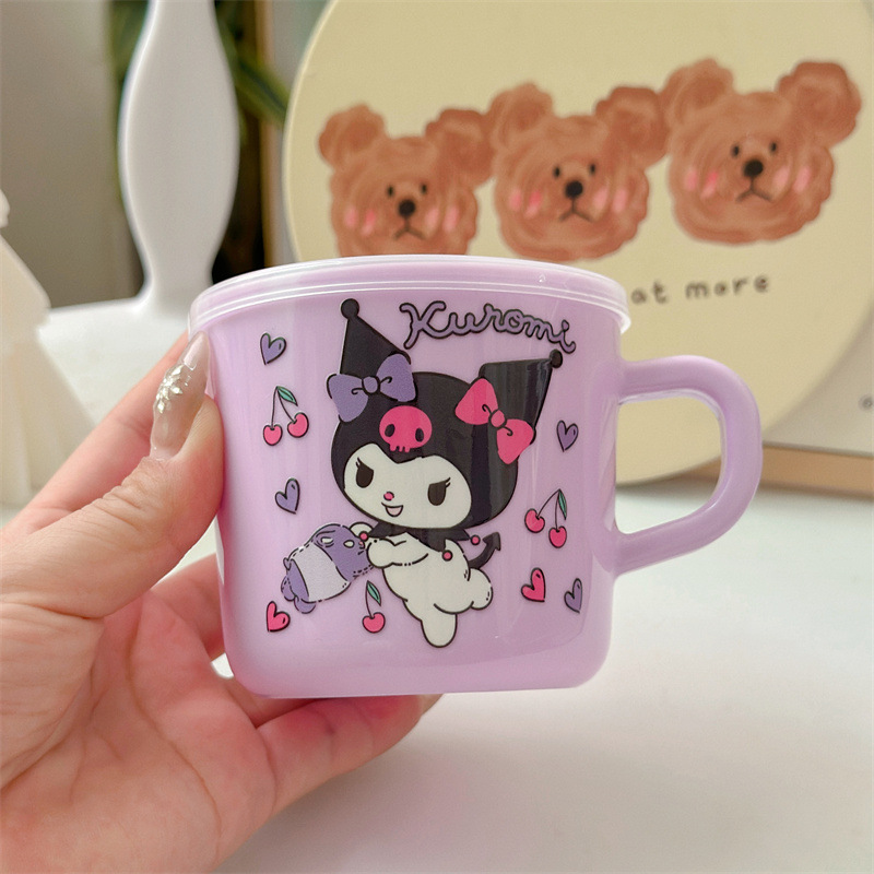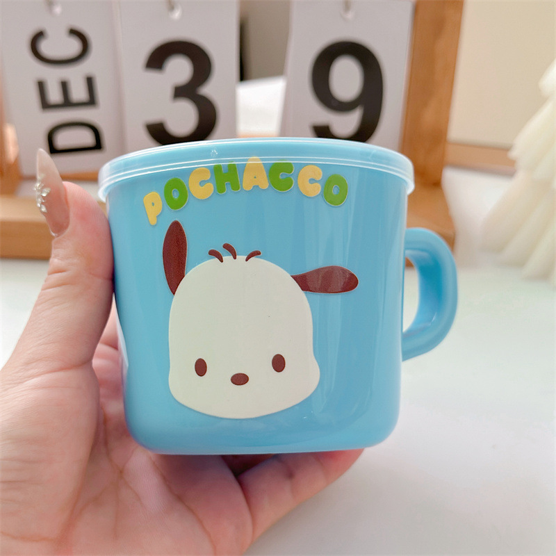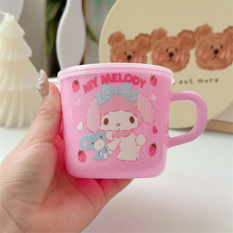 귀여운 어린이 물 컵 마카롱 만화 작은 컵 우유 컵 아기 마시는 컵 뚜껑 손잡이 컵