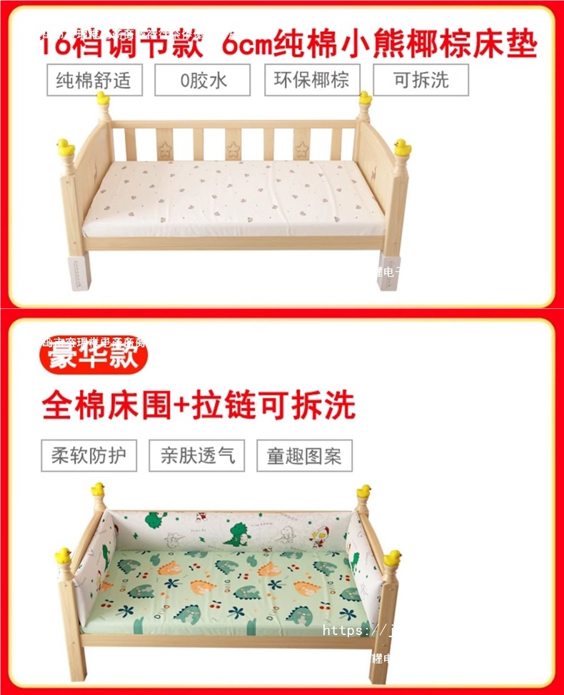 • [침대다리 16단계 조절] 3면 가드레일, 무료 6cm 순면곰 코코넛 야자 매트리스 + 침대 옆