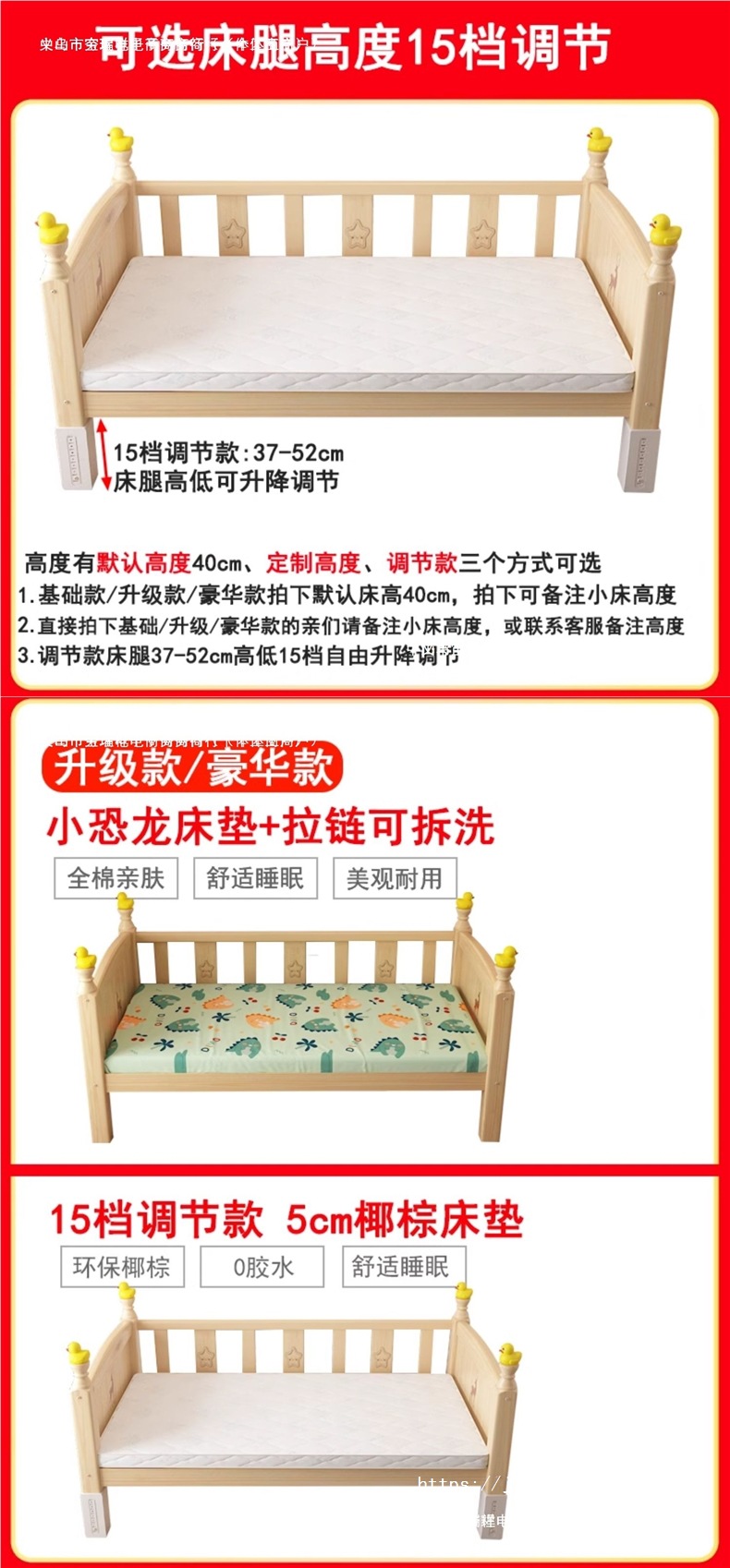 • 고급스러운 3면 가드레일, 무료 소형 공룡 매트리스 + 침대 옆
