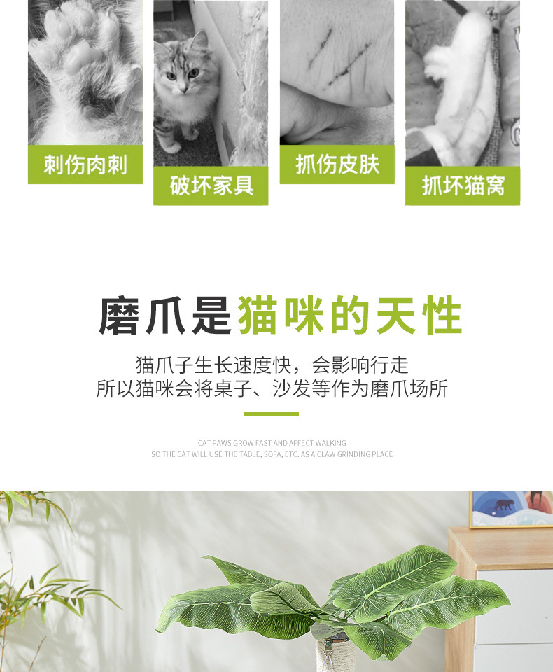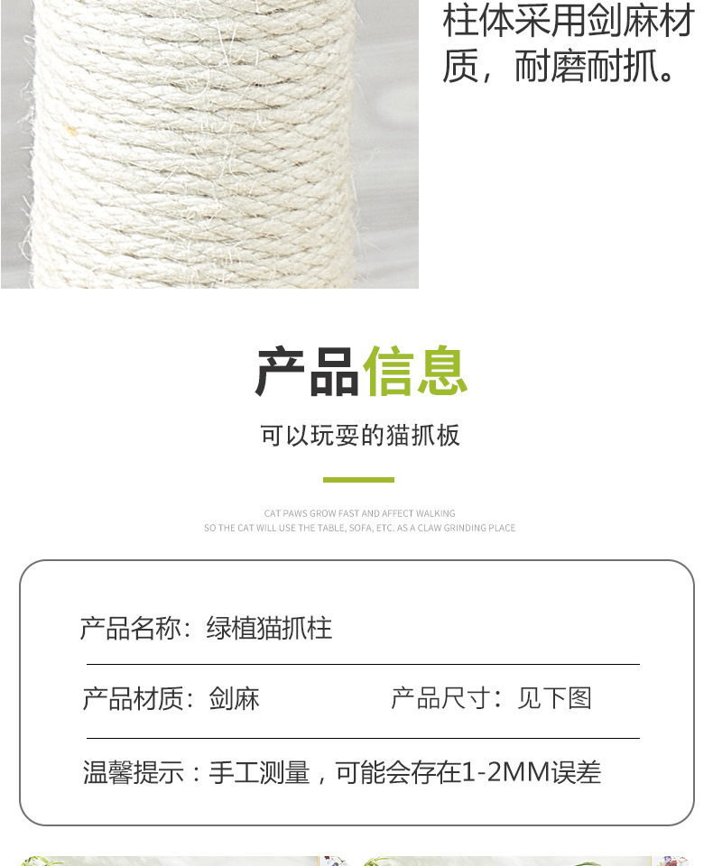 • 시뮬레이션된 녹색 식물 2단 생삼색 고양이 긁기 포스트 [무료 민트 파우더]