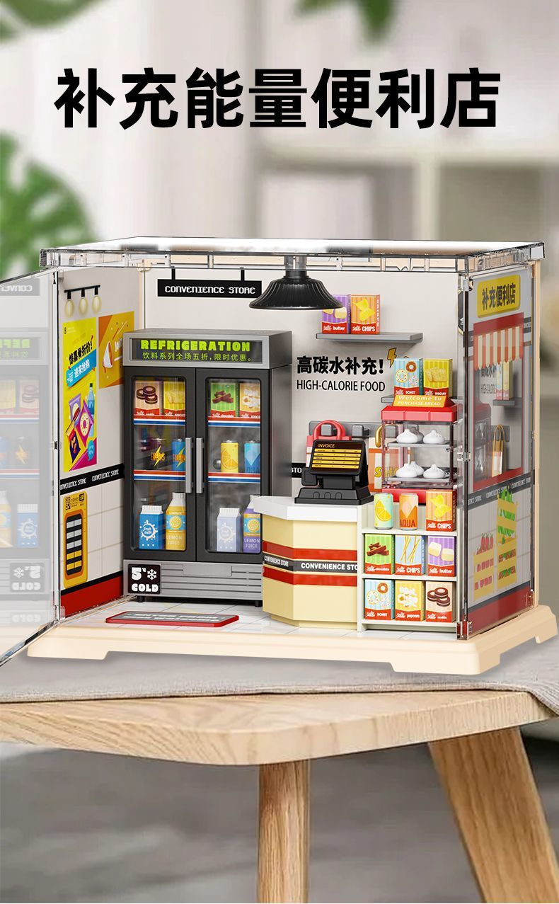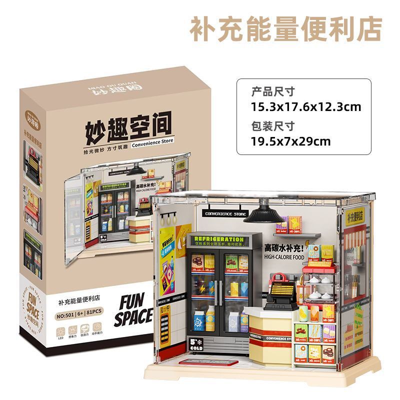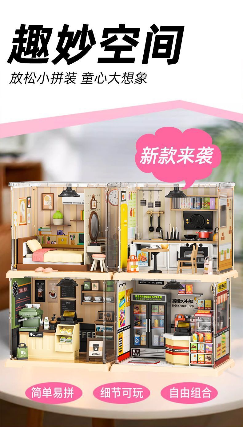 멋진 공간 빌딩 블록 손으로 조립한 오두막 장난감 미니어처 생일 주방 슈퍼 어린이 세계의 재미스토어 가기