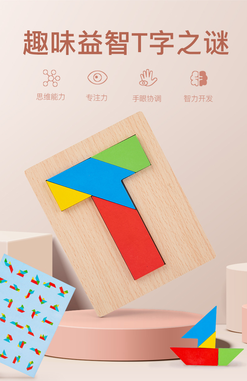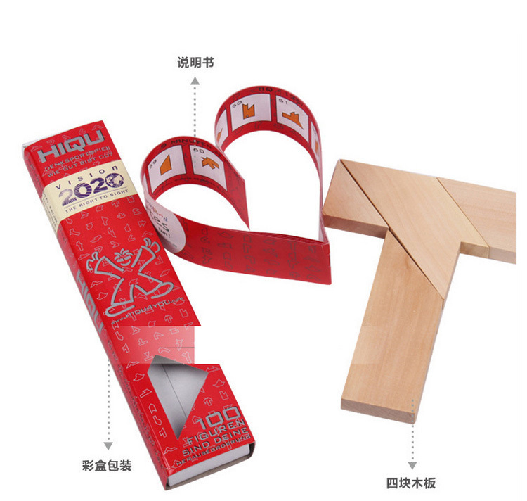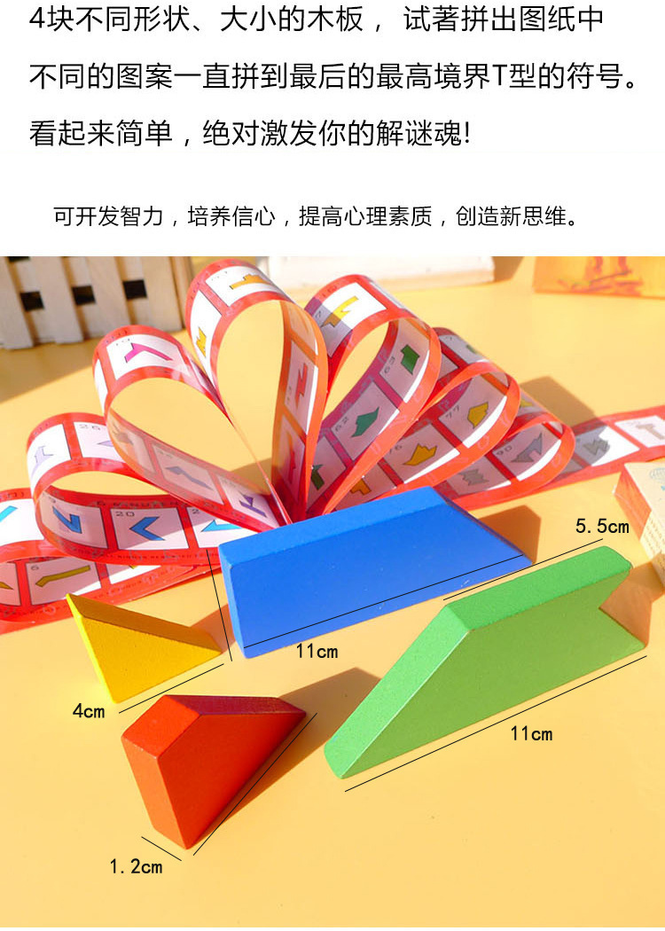 T자형 퍼즐 교육완구, 4조각 퍼즐, 너도밤나무 블록, 초등학생 퍼즐, T자형 나무 브레이크 브레인스토어 가기