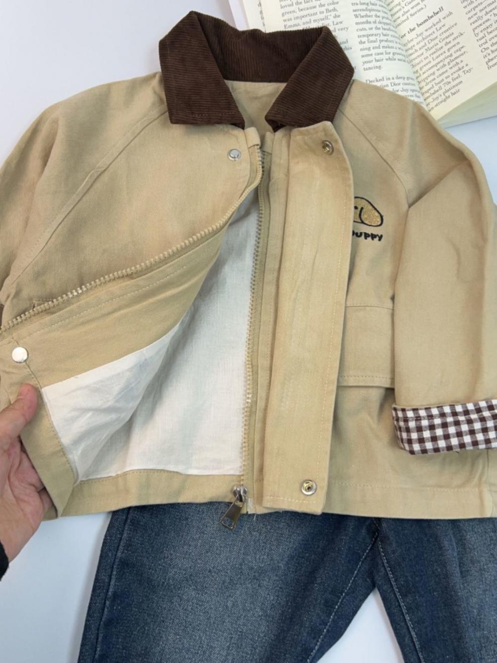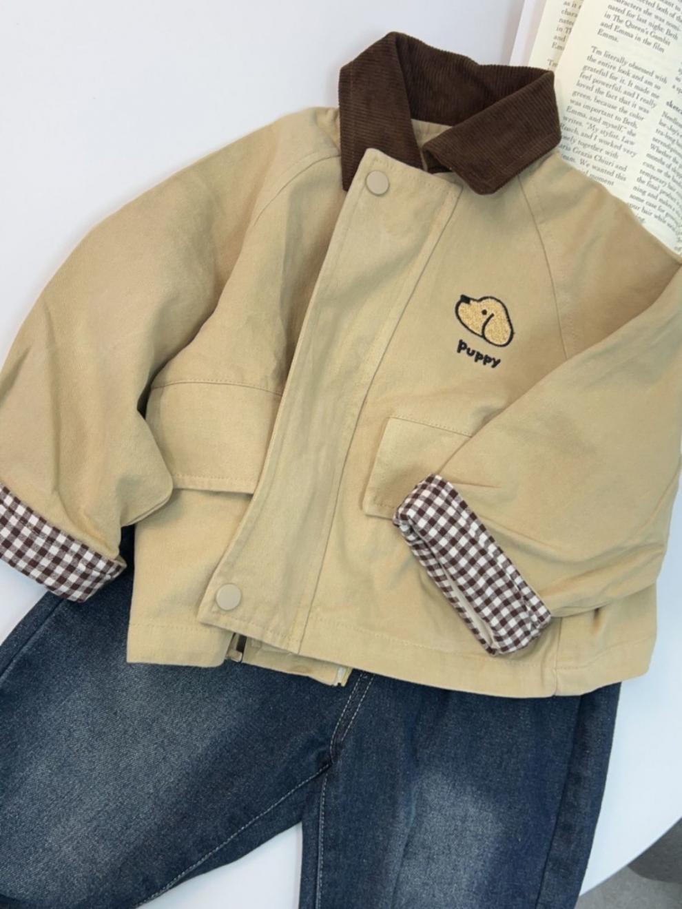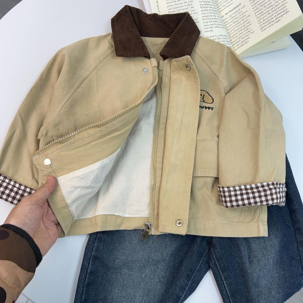 소년 코트 봄, 가을 2025 새로운 잘 생긴 소년 캐주얼 대비 색 옷깃 윈드 브레이커 베이비 자켓 탑 유행스토어 가기