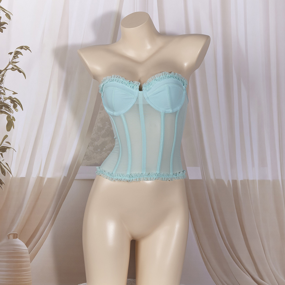 아마존 유럽 및 미국 해외직구 섹시한 메쉬 이중 레이어 백 스트랩 슬립탑 탄력있는 바디 쉐이핑 뷰티슈트 여성 의류스토어 가기