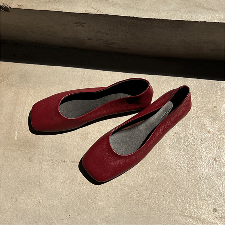 인터넷 축하 같은 스타일 봄 플랫 발레 신발 미니멀리스트 레트로 스퀘어 발가락 우유 신발 하이 버전 틈새 소프트 가죽 싱글 신발 로퍼