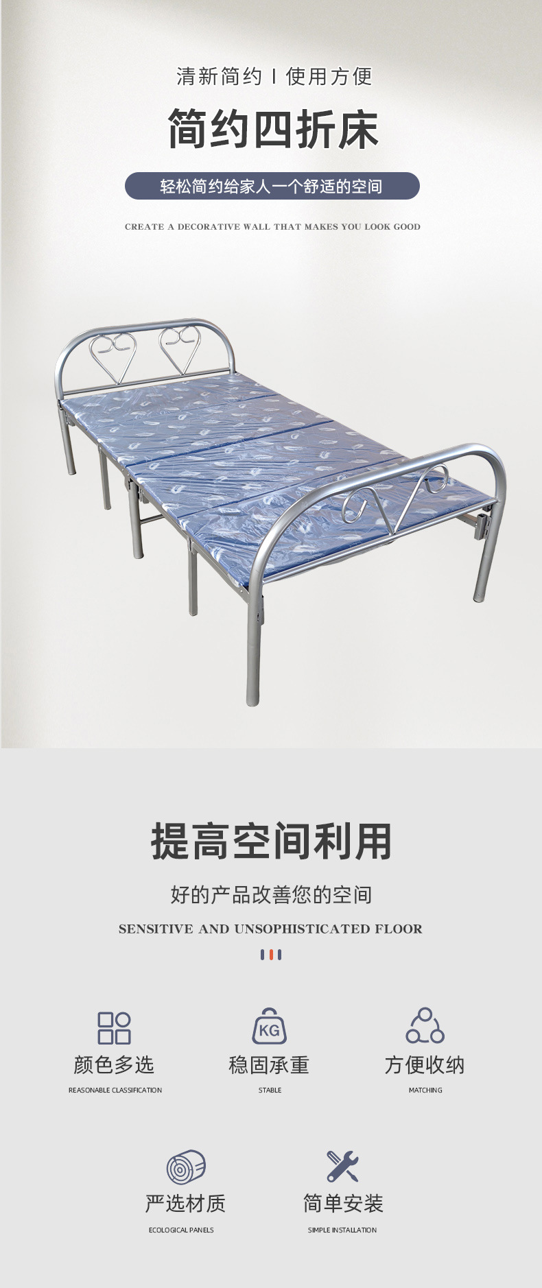공장 도매 간편 가구 가정용 접이식 침대 사무실 철제 낮잠 침대 심플 소형 가구 싱글 침대스토어 가기