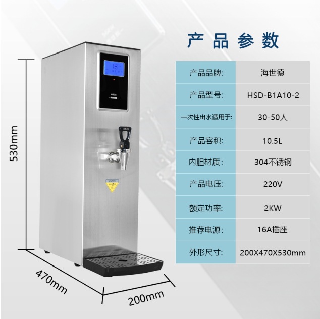 Haishide B1A10-2 밀크티 커피 테이블 바 스테인레스 스틸 환경 친화적 인 상업용 물 보일러 정수기 정수기 15L스토어 가기