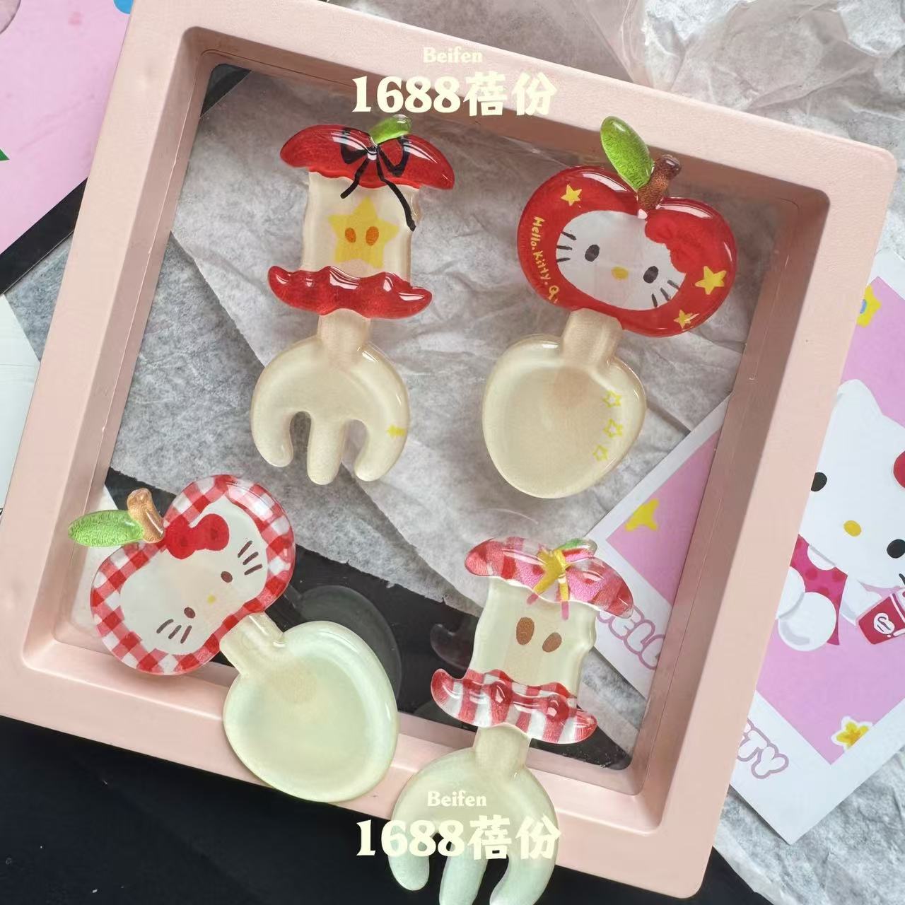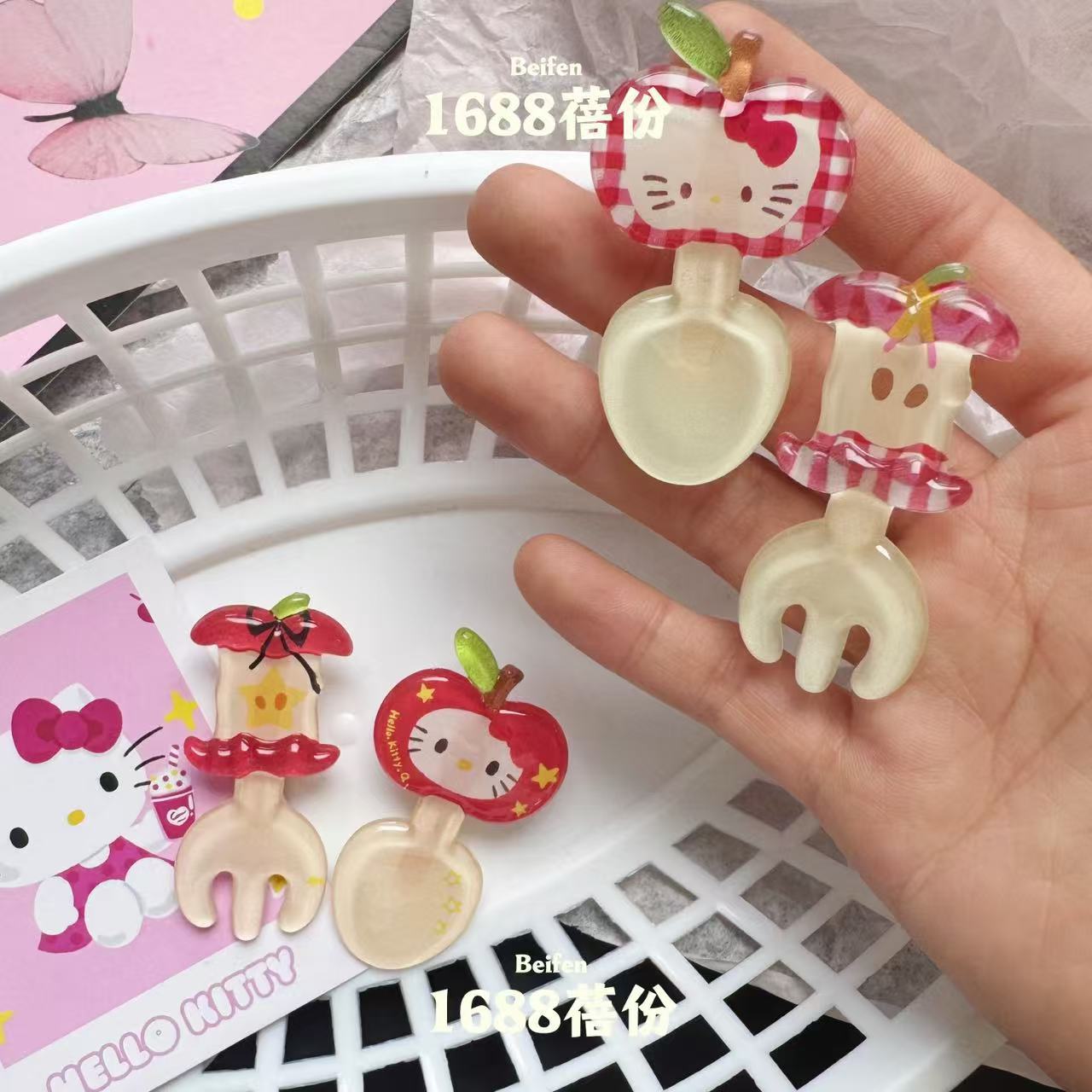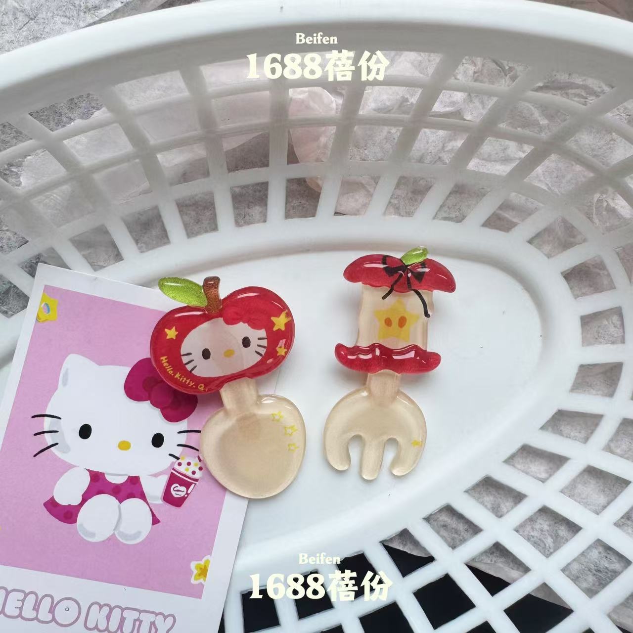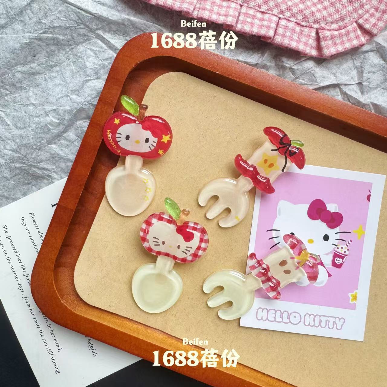 만화 애플 키티 스푼 포크 헤어핀 달콤한 소녀 하트 브레이크 헤어 덕빌 클립 클립 클립 귀여운 헤어 액세서리스토어 가기