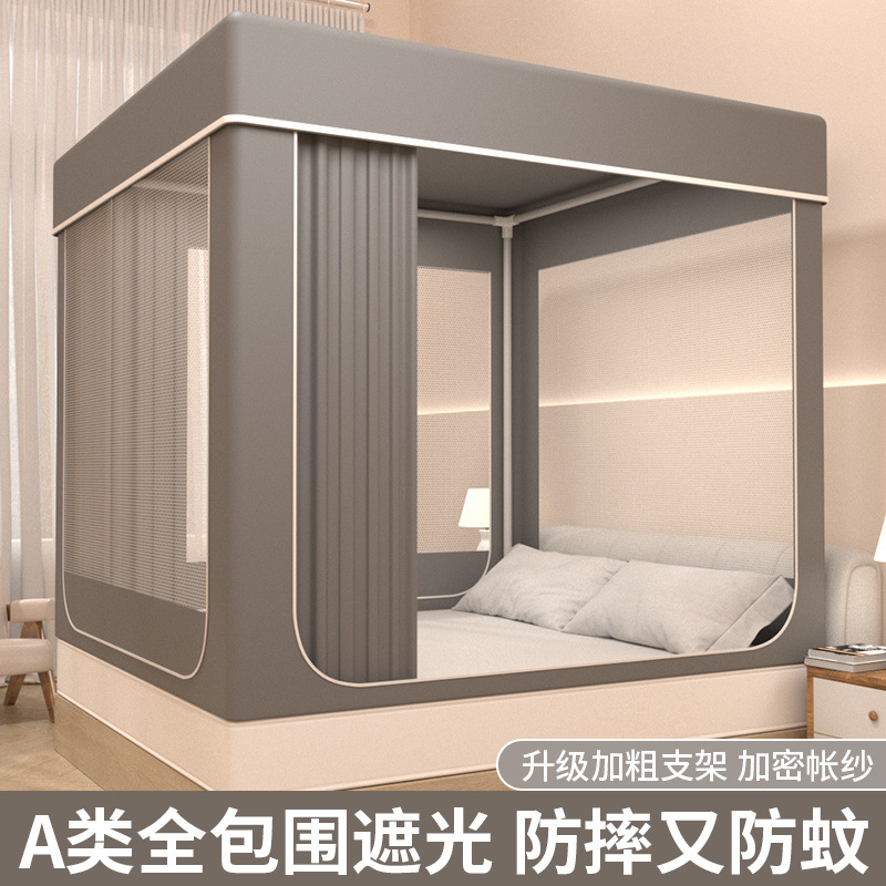 새로운 방진 및 차광 모기장, 3개의 도어가 있는 어린이 낙하 방지 모기장, 가정용 침실 침대 커튼, 완전히 밀폐된 지퍼 사각형 모기장