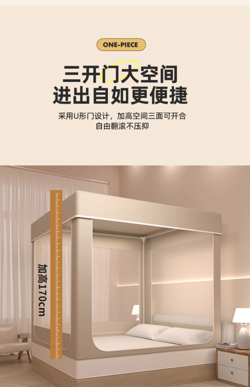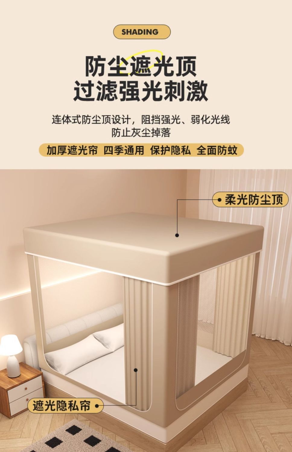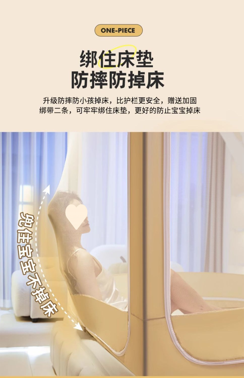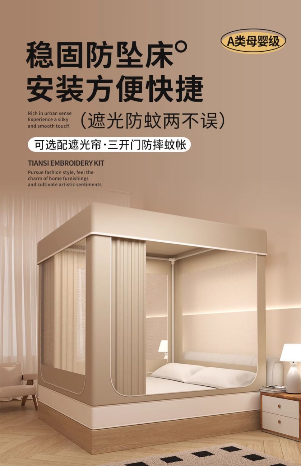 새로운 방진 및 차광 모기장, 3개의 도어가 있는 어린이 낙하 방지 모기장, 가정용 침실 침대 커튼, 완전히 밀폐된 지퍼 사각형 모기장스토어 가기