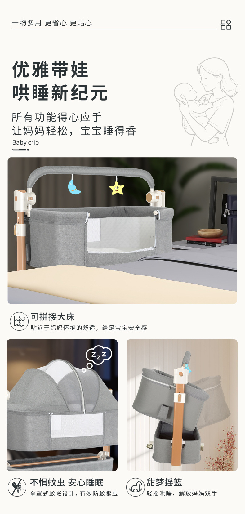 아기 침대 이동식 휴대용 요람 침대 아기 침대 옆 침대 다기능 신생아 및 어린이 접합 대형스토어 가기