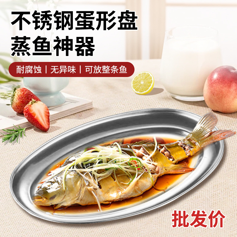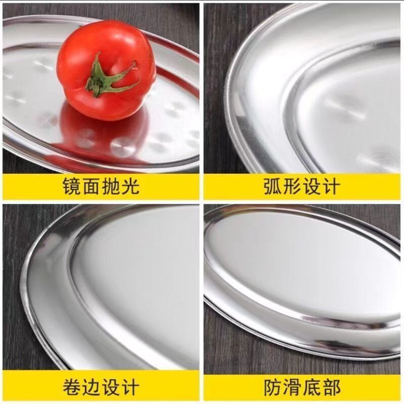 타원형 스테인레스 스틸 접시 바베큐 접시 생선 접시 도매 상업용 레스토랑 멀티 피스 생선 찜 접시 레스토랑 낙하 방지 및 고온 방지스토어 가기