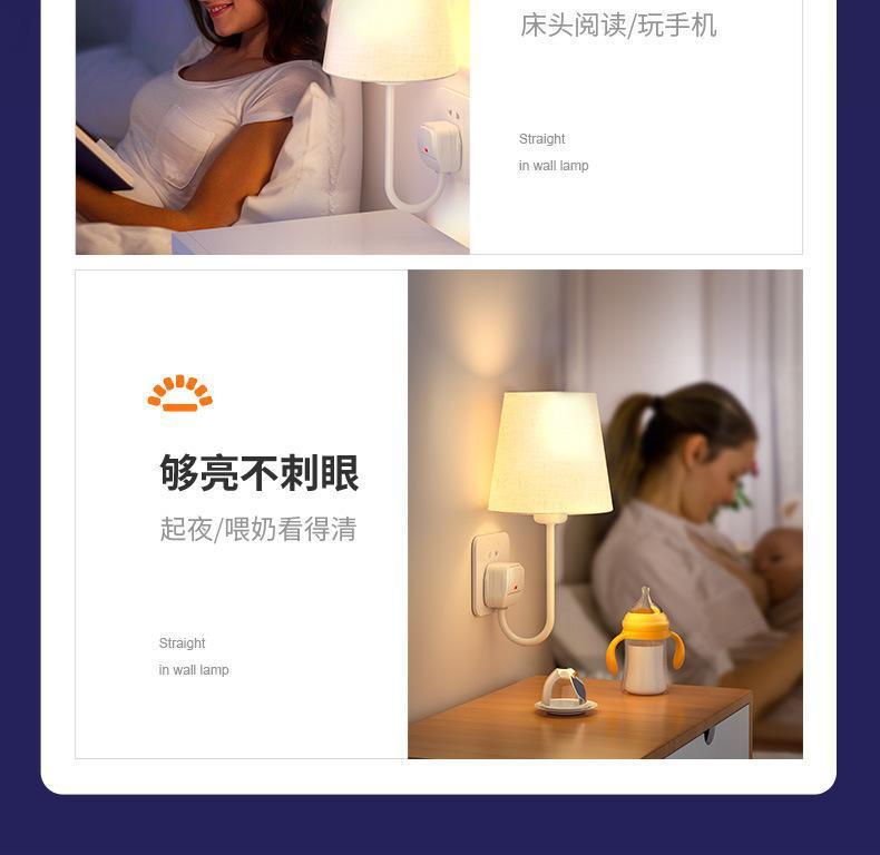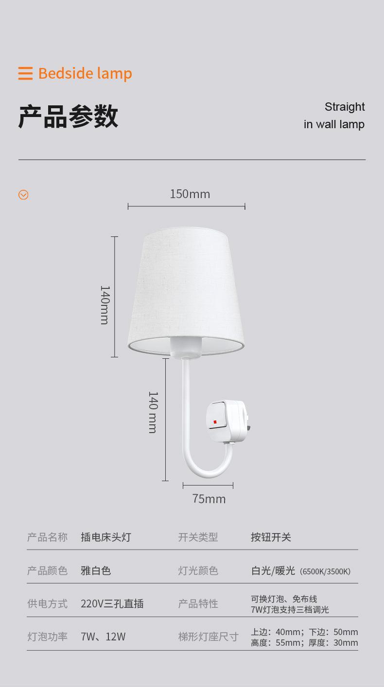 배선이 필요 없는 벽등 설치, 펀칭 침대 옆 램프, 침실 부드러운 조명 배선, 간단한 소켓형 야간 조명, 직접 판매스토어 가기