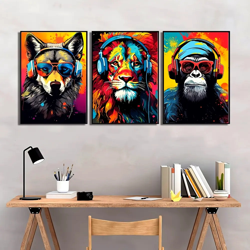 현대 미술 헤드폰 동물 호랑이 늑대 침실 거실 복도에 게임 그림 벽 예술을위한 코끼리 게임 그림스토어 가기
