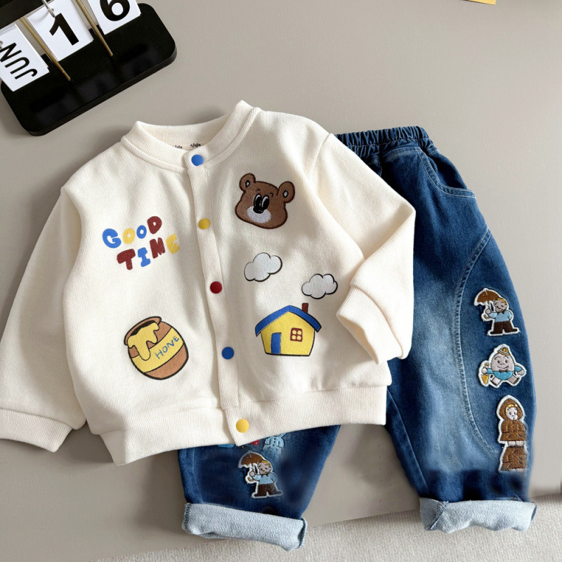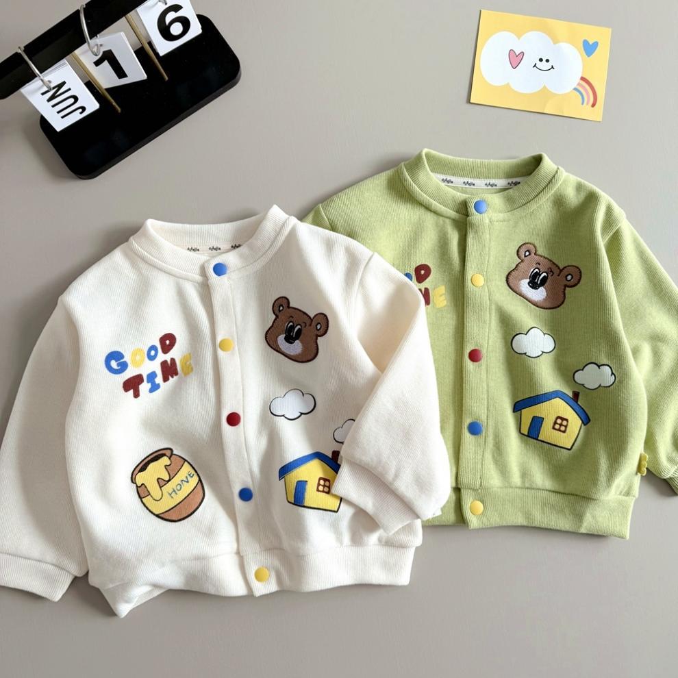 아동용 봄 가디건 ~ 남아 및 여아용 귀여운 만화 얇은 코트, 유아용 패셔너블한 새 라운드 넥 탑, 아동복스토어 가기