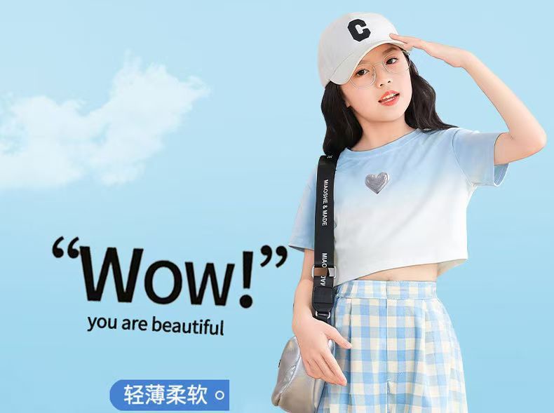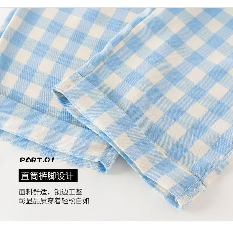 25 새로운 여름 어린이 반팔 바지 정장 중소형 소녀를위한 세련된 반팔 격자 무늬 바지 겉옷 투피스 세트스토어 가기