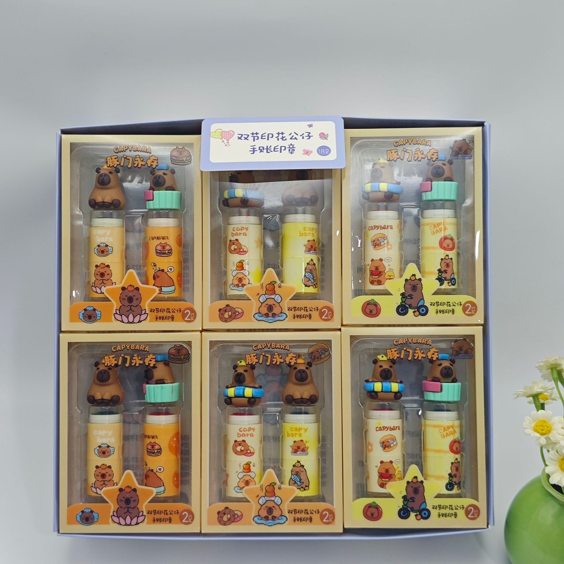카피바라 인형 스탬프 세트 어린이 만화 패턴 격려용 수첩 학생 선물 만화 입체 스탬프