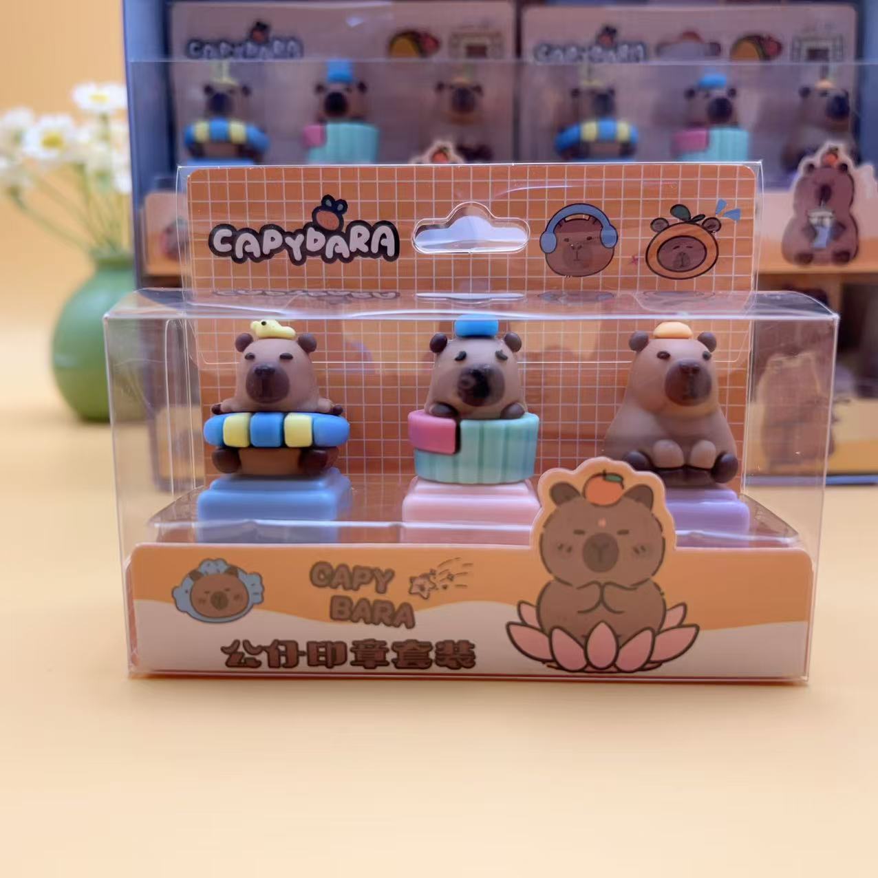 카피바라 인형 스탬프 세트 어린이 만화 패턴 격려용 수첩 학생 선물 만화 입체 스탬프스토어 가기