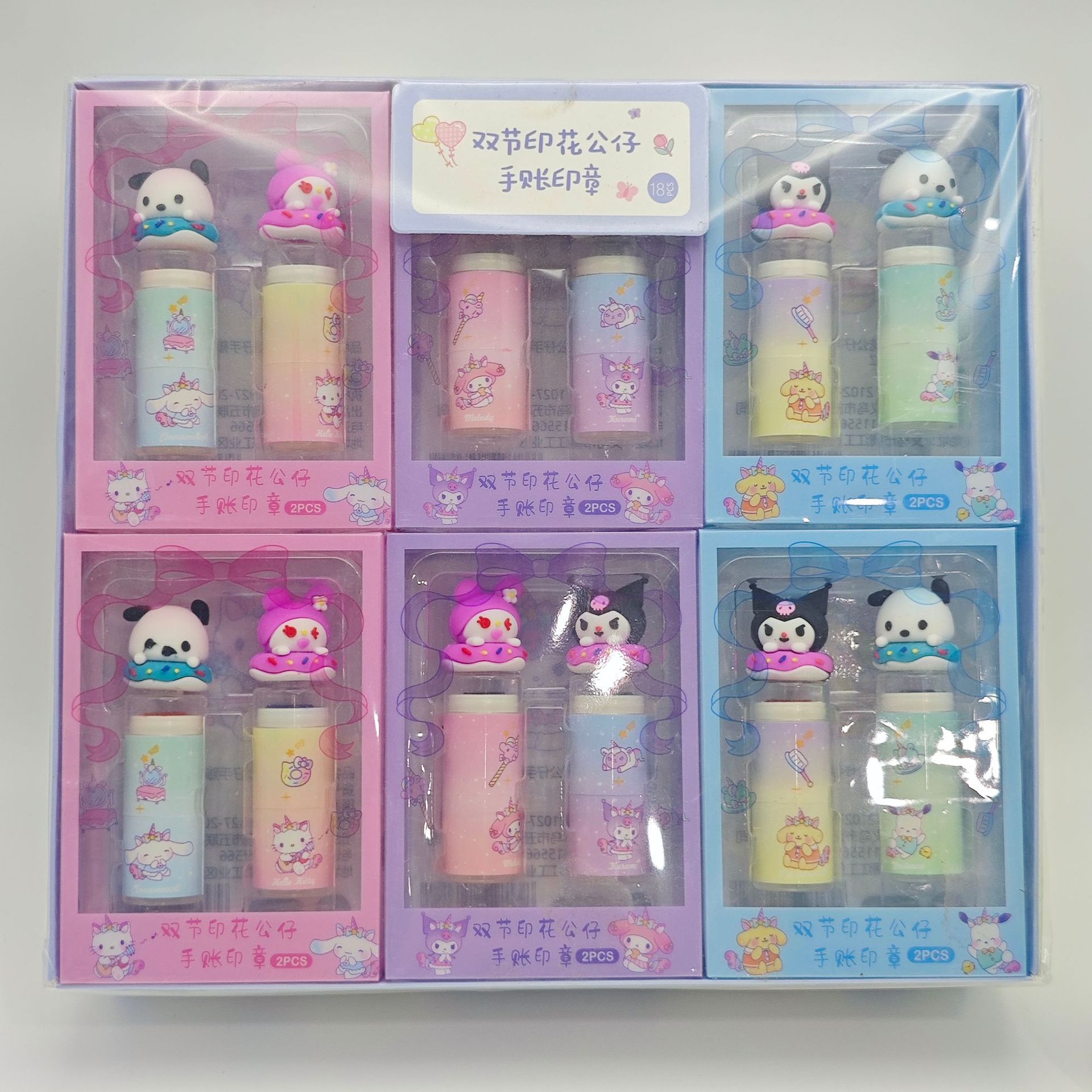 • 이중 섹션 산리오 인형 스탬프, 카드당 2개(디스플레이 상자와 함께 18개 카드 구매 권장)