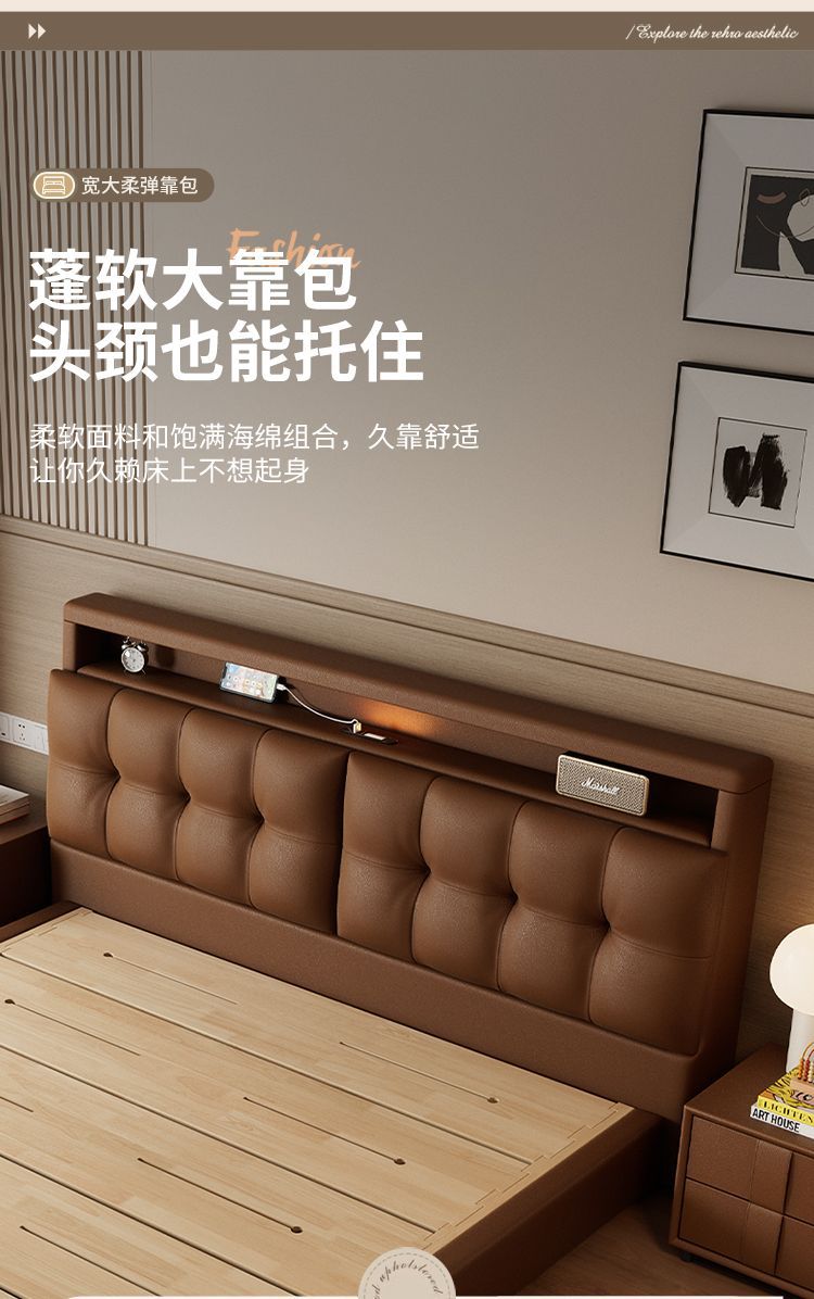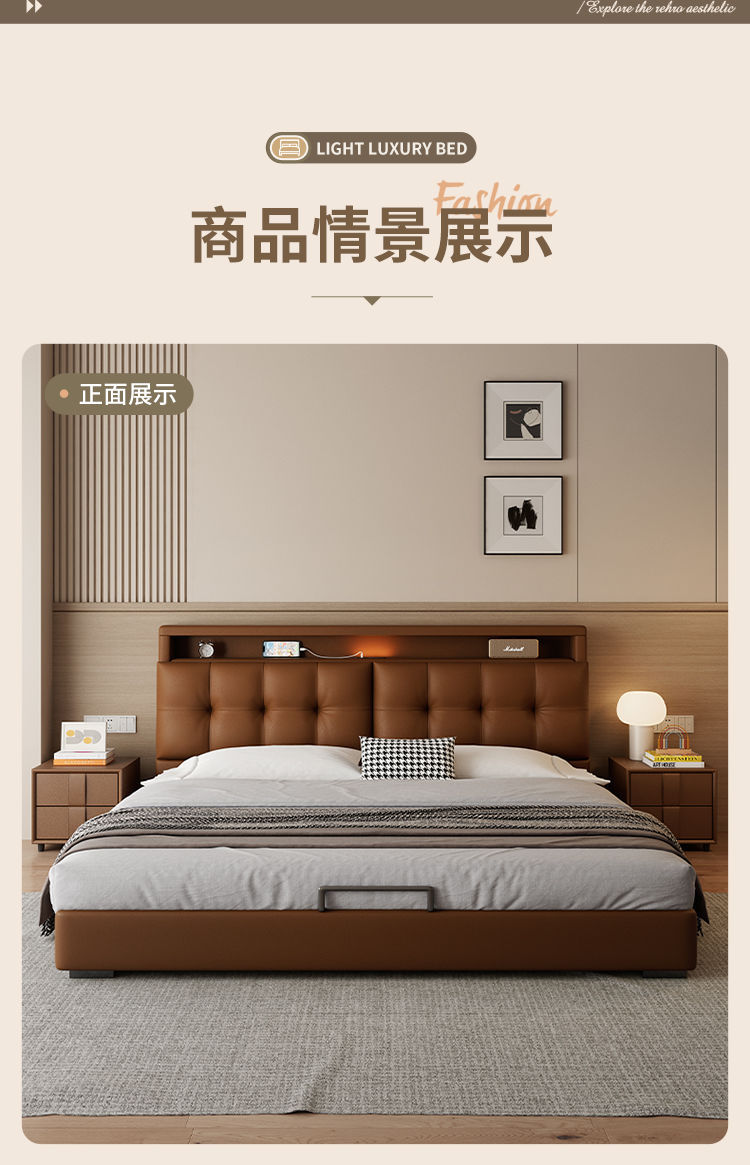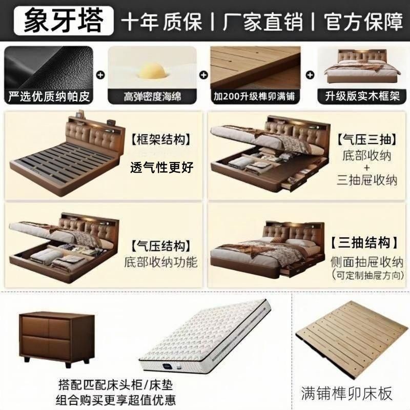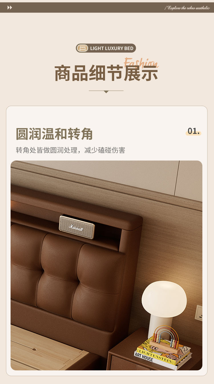 다기능 침대 현대적인 미니멀리스트 마스터 침실 1.8 소프트 백 침대 분위기 있는 이탈리아 침대 옆 수납 서랍 웨딩 침대스토어 가기