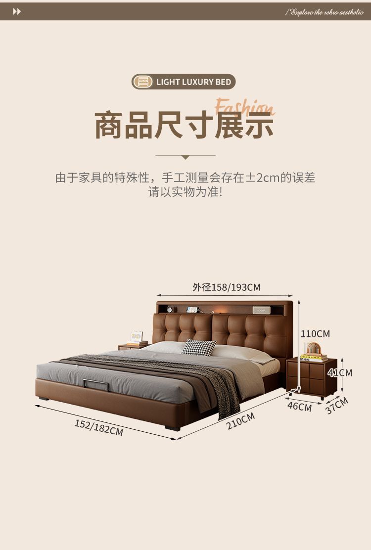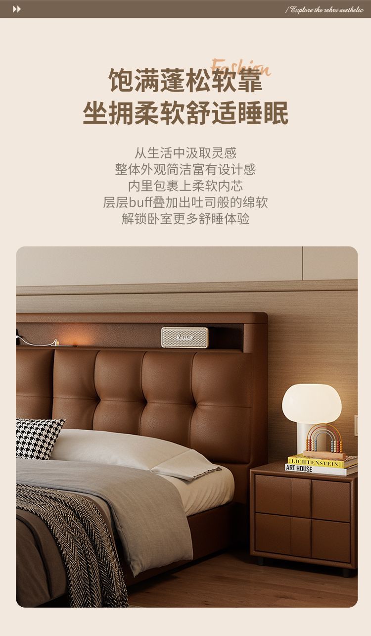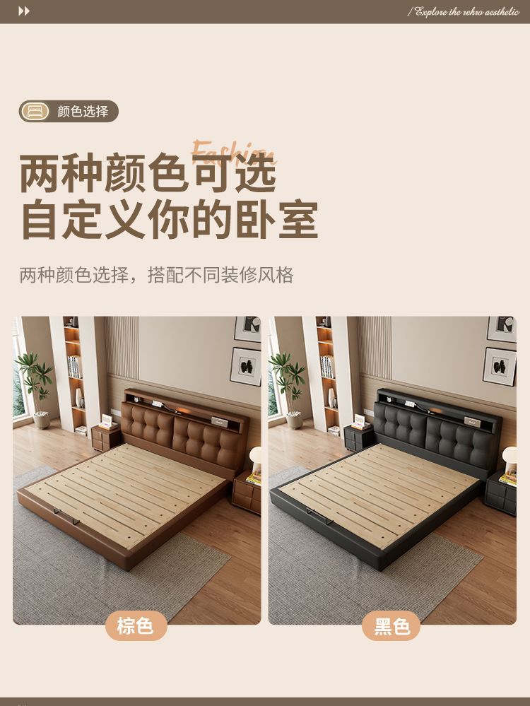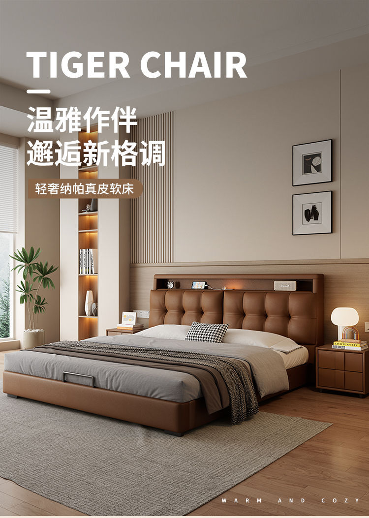 다기능 침대 현대적인 미니멀리스트 마스터 침실 1.8 소프트 백 침대 분위기 있는 이탈리아 침대 옆 수납 서랍 웨딩 침대스토어 가기