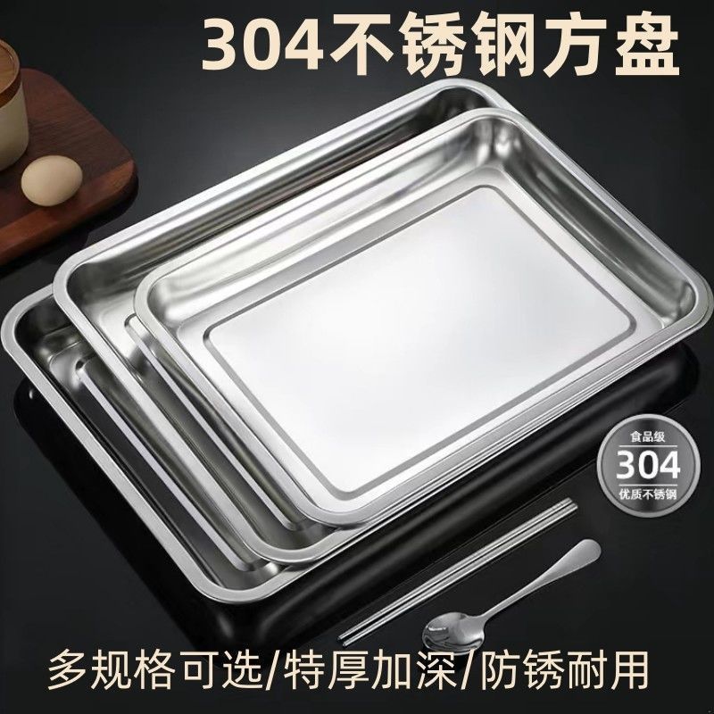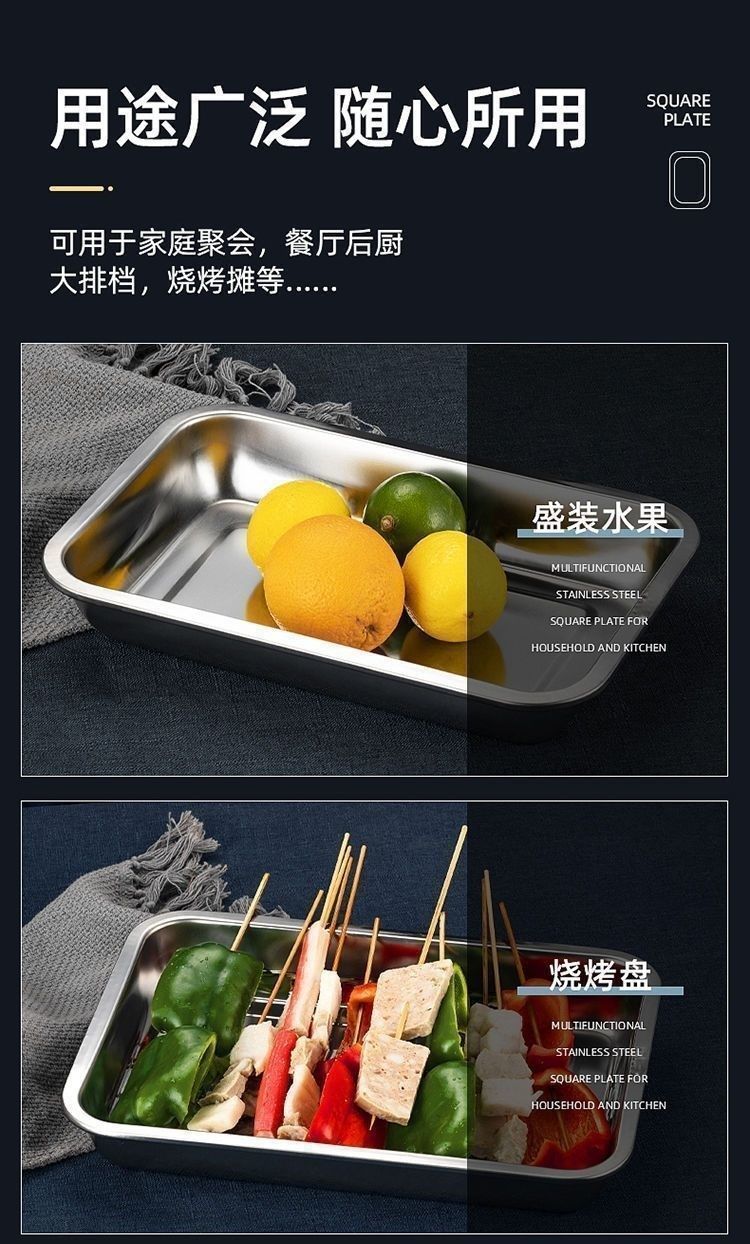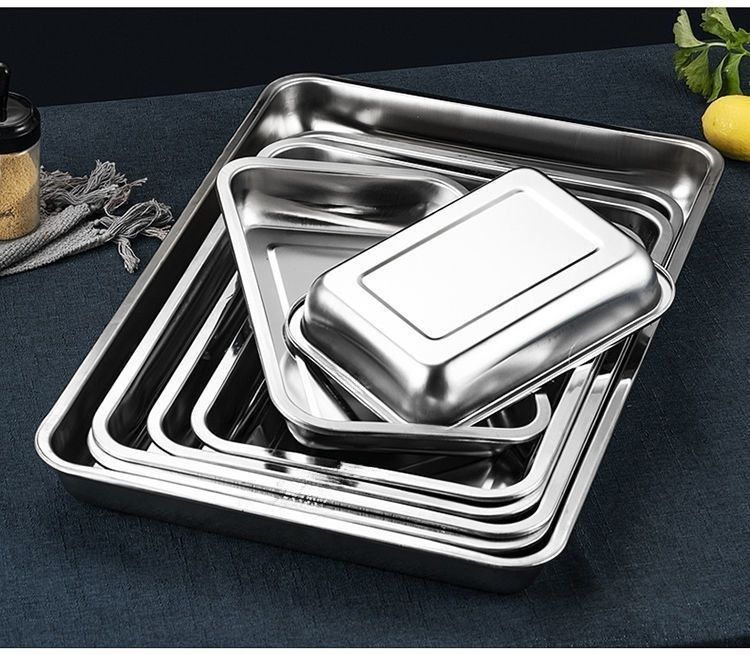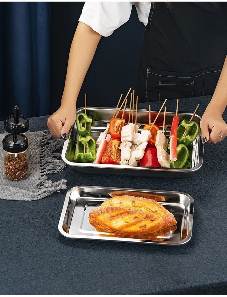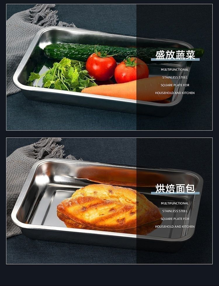 스테인레스 스틸 사각 접시, 매우 두꺼운 직사각형 디너 접시, 바베큐 찜 밥 접시, 가정용 트레이, 자석 생선 구이 접시 도매 제조 업체스토어 가기