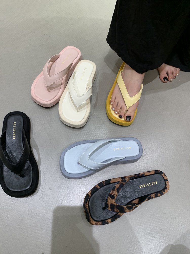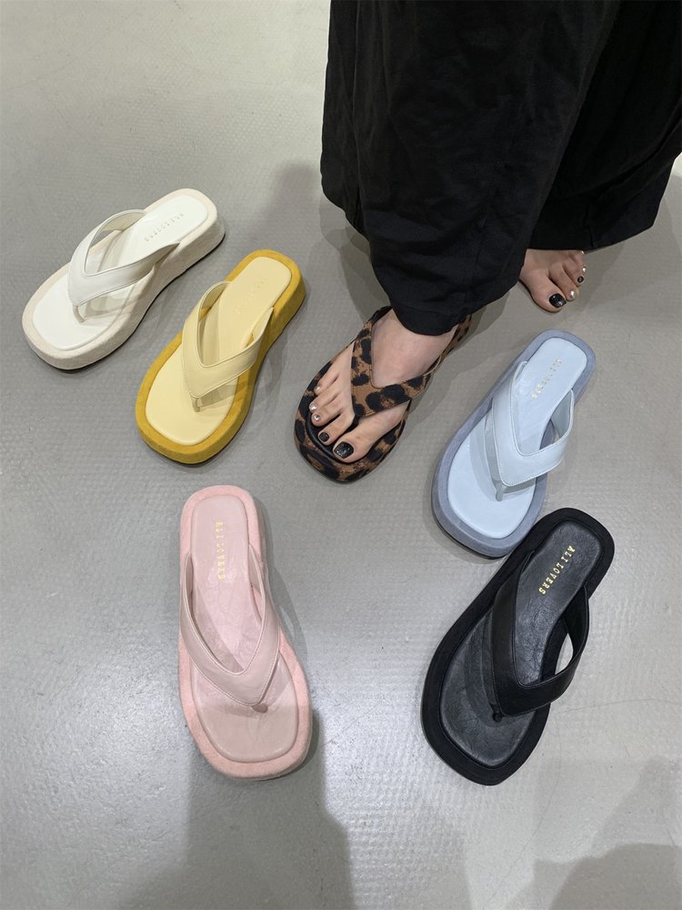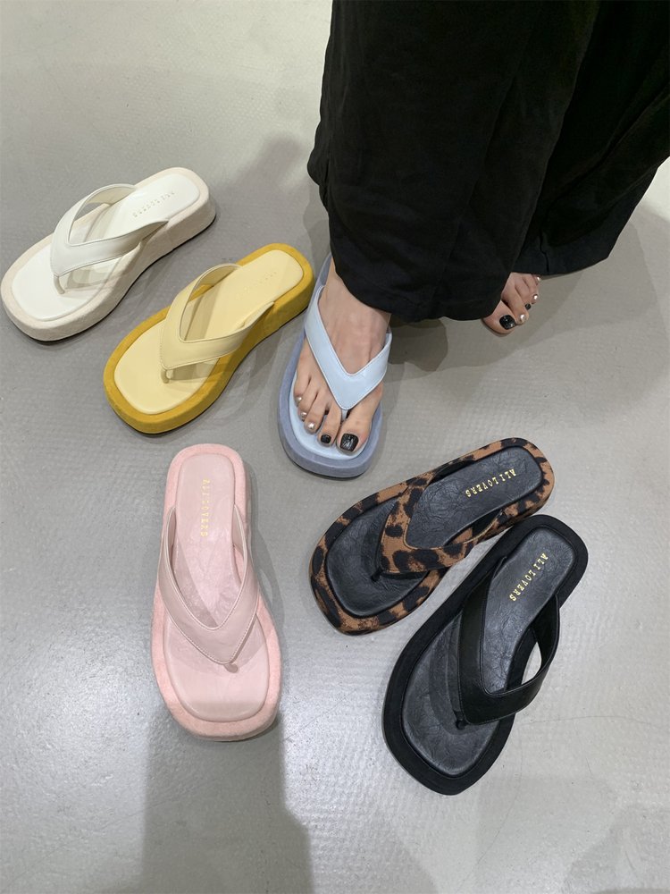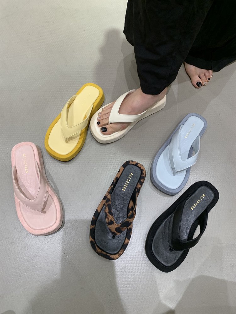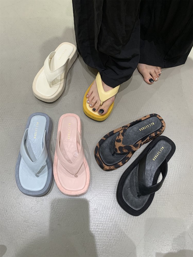 여성을위한 레오파드 프렌치 플립 플롭 2025 새로운 여름 겉옷 요정 스타일 샌들 해변 해변 두꺼운 밑창 플립 플롭스토어 가기