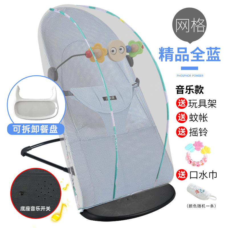 • 올 블루 통기성 흔들의자(음악 모델)에는 장난감 선반이 함께 제공됩니다.