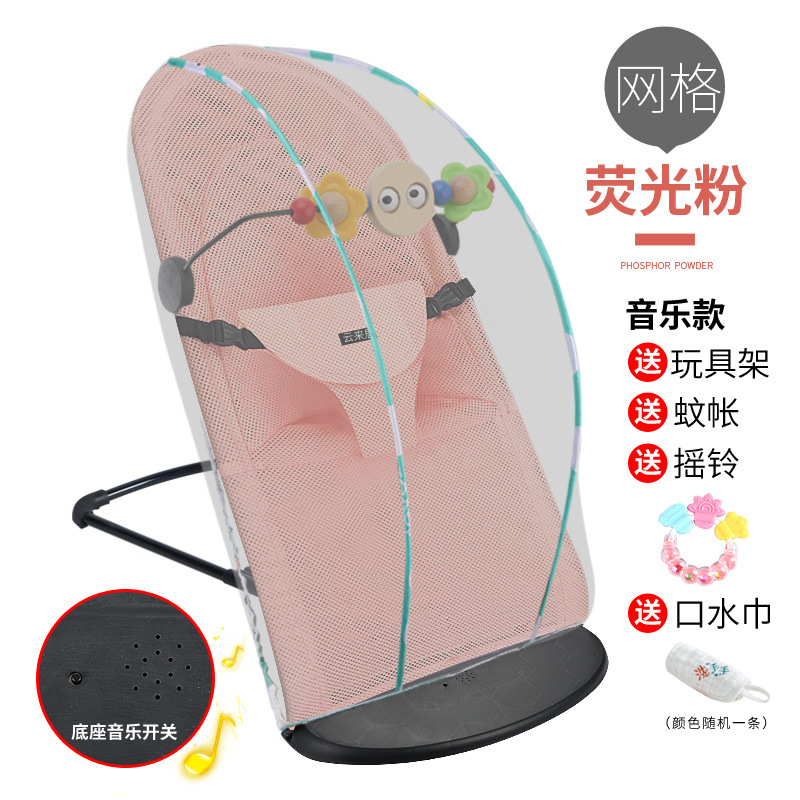 • 올 핑크색 통기성 흔들의자(뮤직 모델)에는 장난감 선반, 모기장, 딸랑이, 침수건이 함께 제공됩니다.