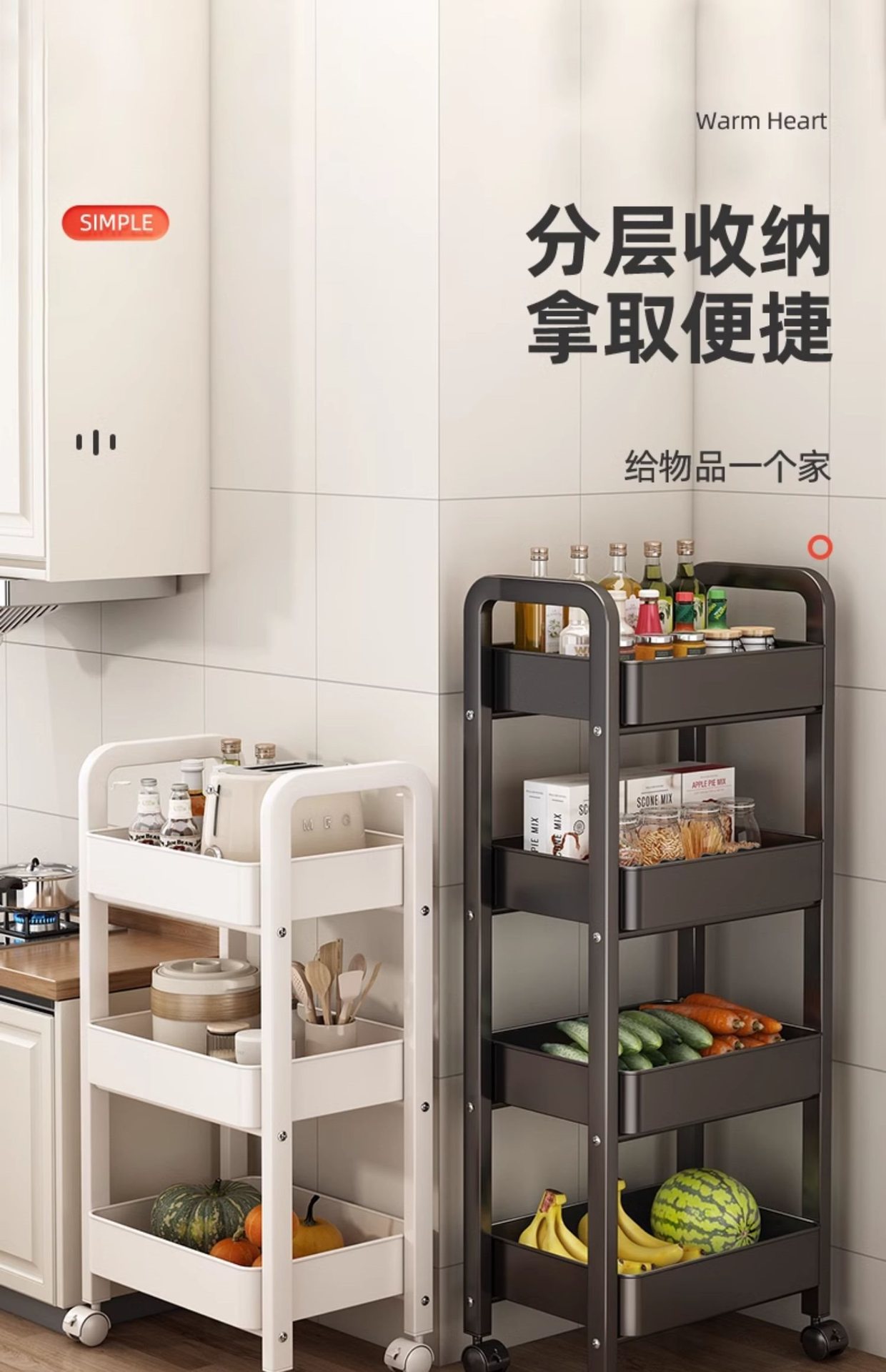 주방 보관 랙 다기능 바닥 서 야채 카트 가정용 과일 및 야채 바구니 다층 보관 선반
