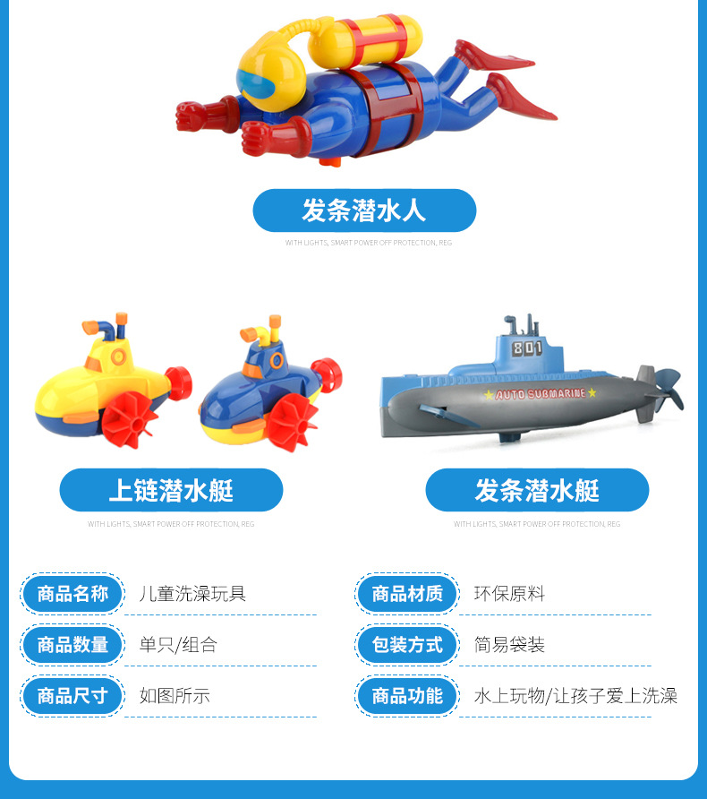 어린이 욕실 시계 장난감 잠수함 당기는 끈 상어 오리 다이버 목욕 및 수영장스토어 가기