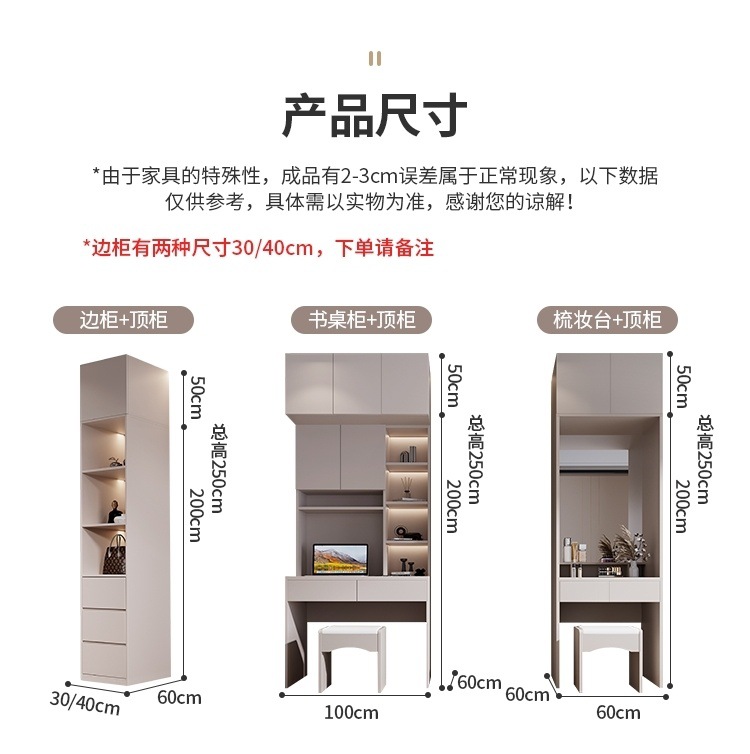 • 옷장 + 상단 캐비닛 + 측면 캐비닛