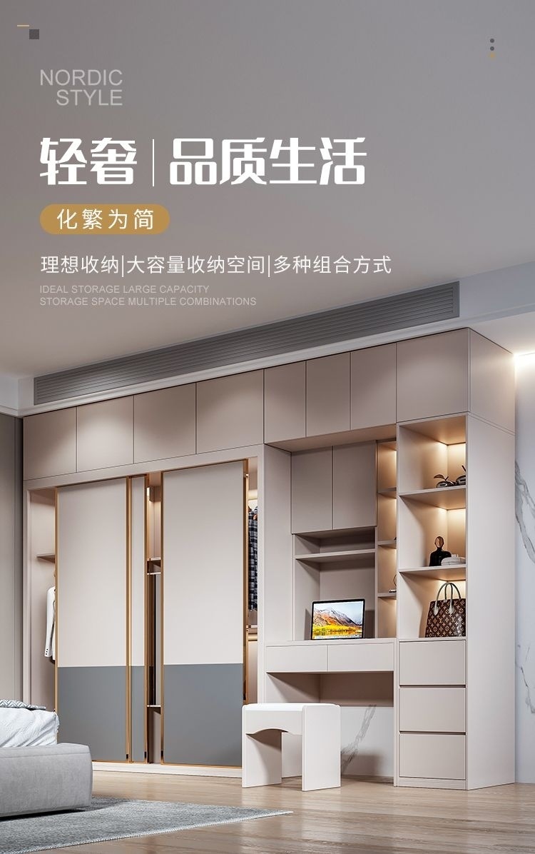 가정용 침실을 위한 가벼운 고급 새 스타일 슬라이딩 도어 옷장, 작은 아파트, 두꺼운 후면 패널의 전체 세트, 간단한 슬라이딩 도어 옷장, 인기 모델스토어 가기