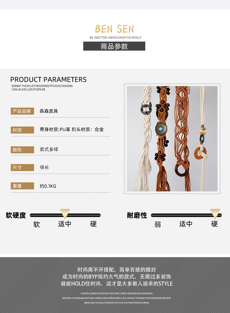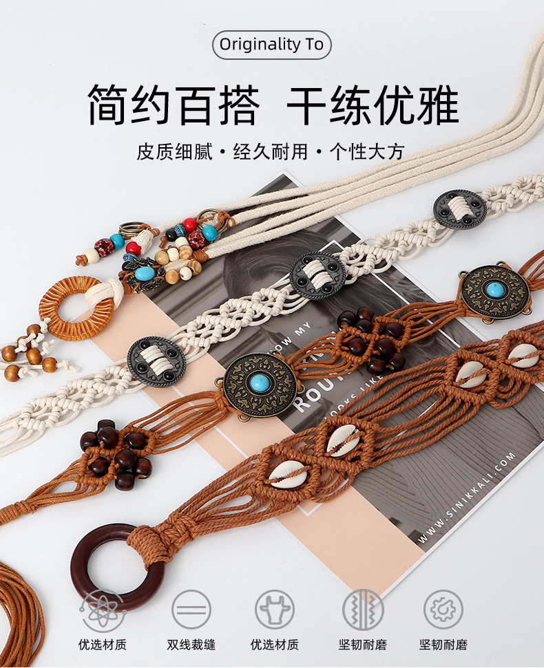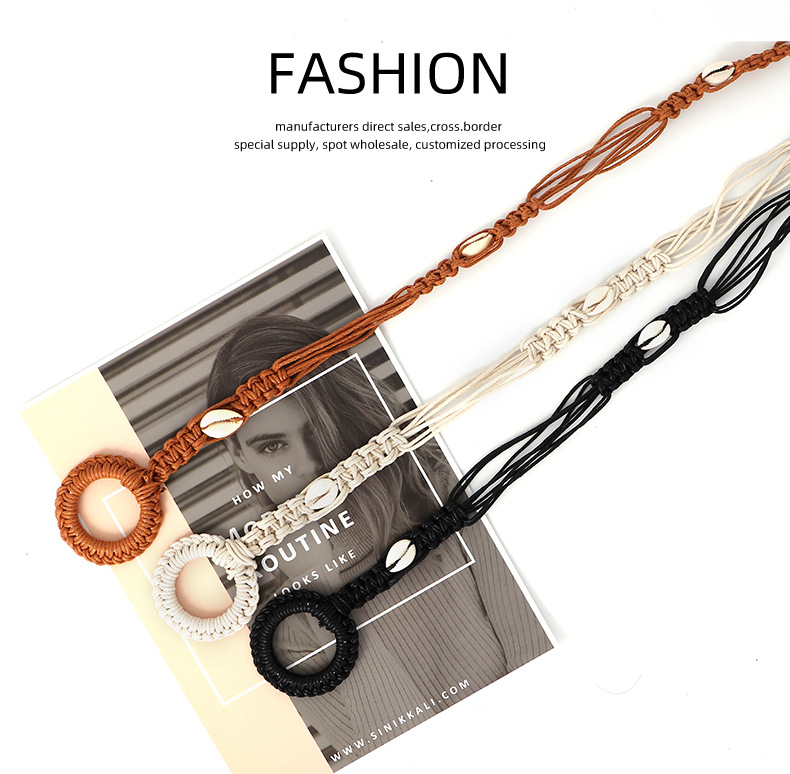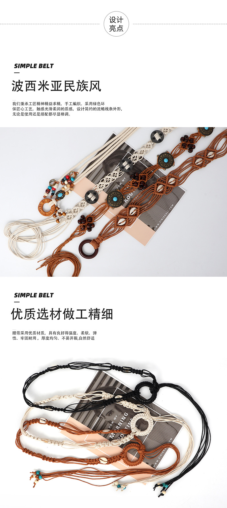 여름 여성용 보헤미안 인 트렌디한 베이지색 땋은 대마 로프 벨트, 여성용 다용도 맞춤형 장식 허리띠스토어 가기