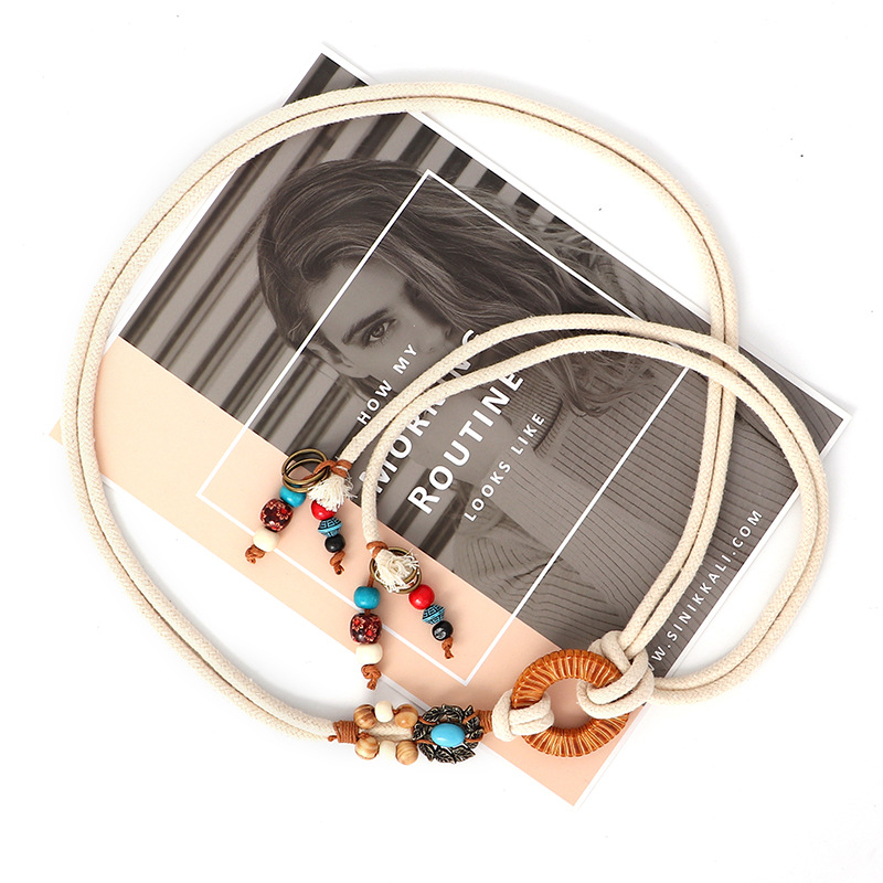 여름 여성용 보헤미안 인 트렌디한 베이지색 땋은 대마 로프 벨트, 여성용 다용도 맞춤형 장식 허리띠