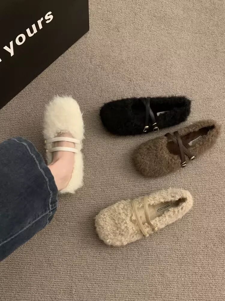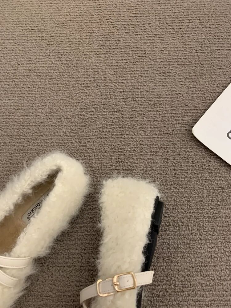 여성을위한 프렌치 이브닝 스타일 크로스 버클 메리 제인 코튼 슈즈 2024 가을 겨울 새로운 스타일의 아웃웨어 편안하고 다재다능한 모피 슈즈스토어 가기