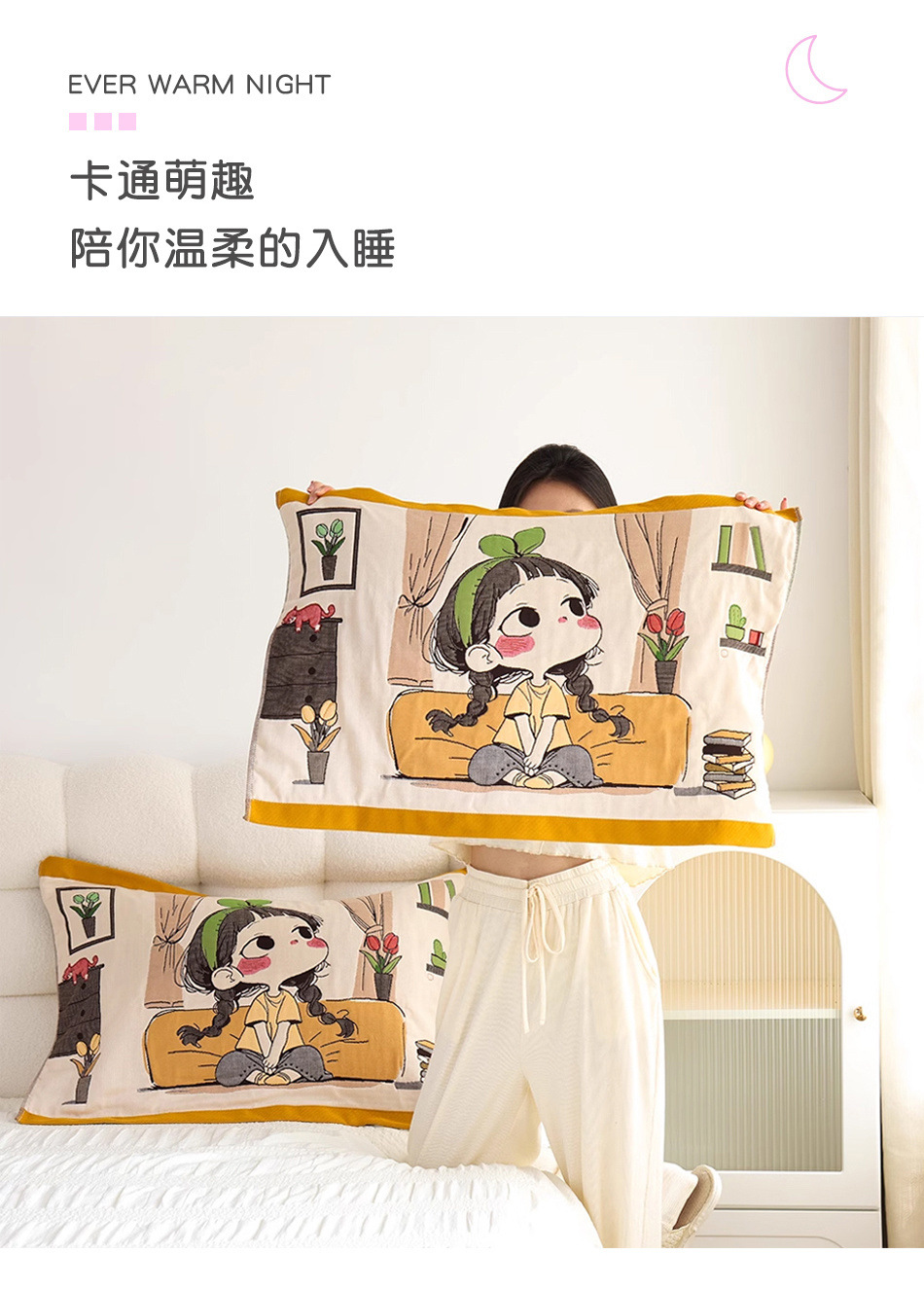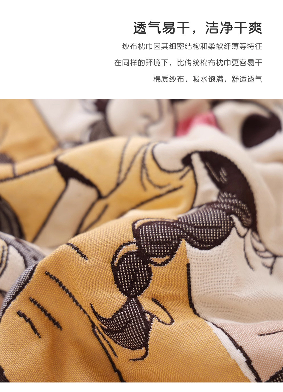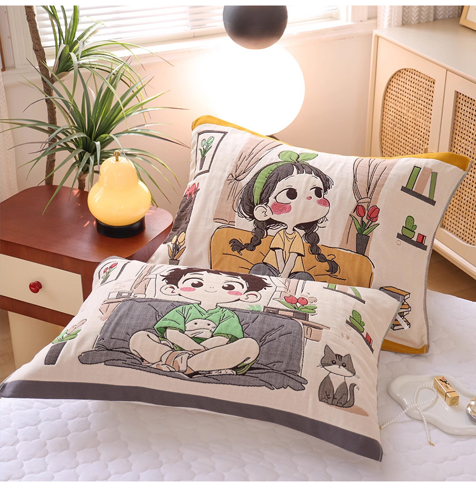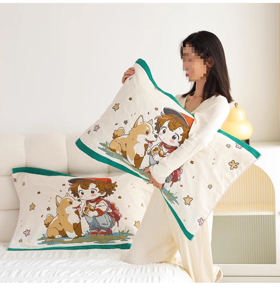 엄마와 아기 등급 8겹 면 거즈 베개 커버, 고급 만화 귀여운 부드러운 땀 방지 면 두꺼운 베개 커버, 무료 배송